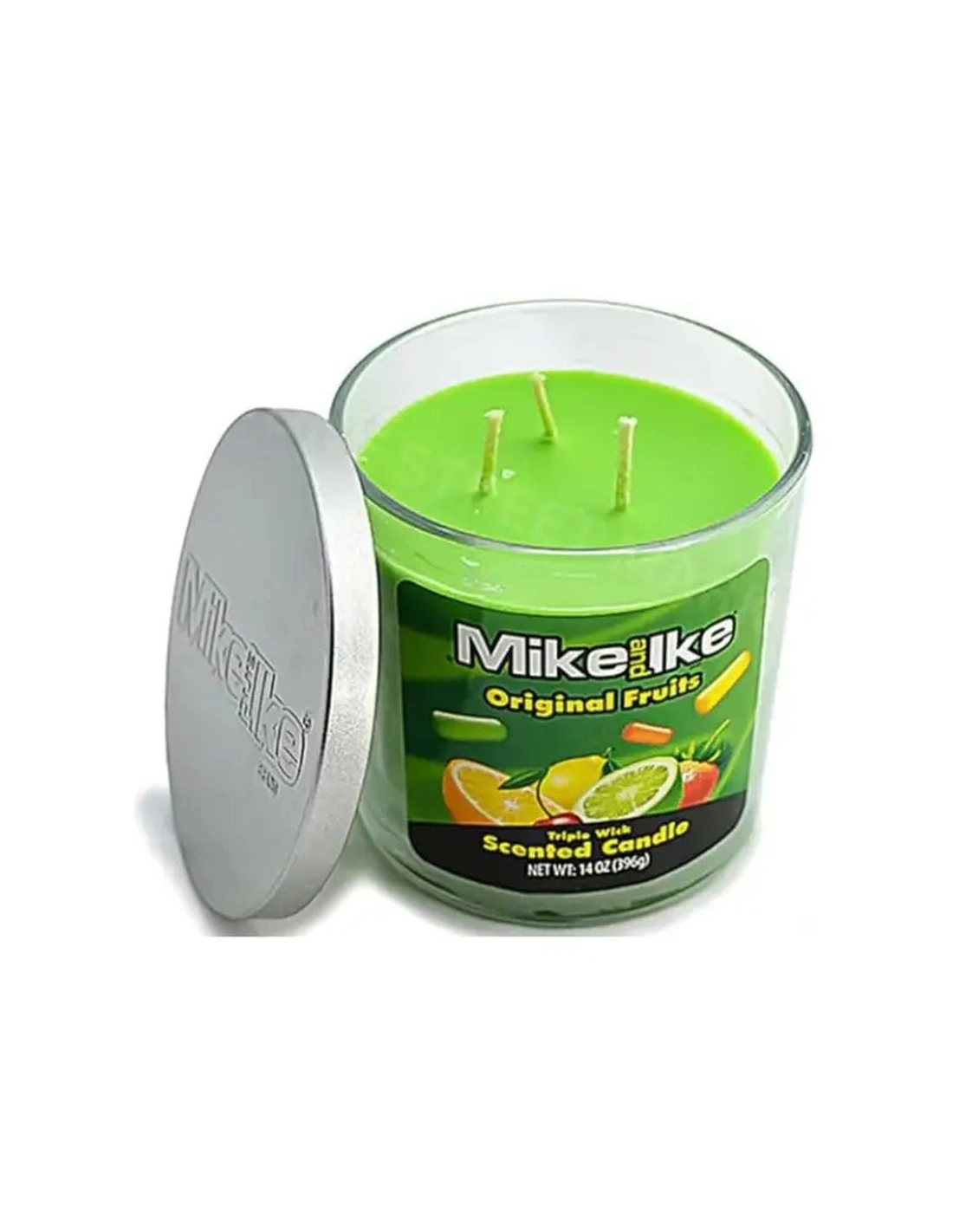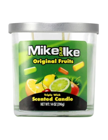 Faites le plein de pep's et de senteurs fruitées avec la grande Bougie Parfumée Mike & Ike Original Fruits (396g) ! Équipée de 3 mèches pour une diffusion optimale, cette bougie grand format embaumera votre pièce avec les arômes sucrés et acidulés des mythiques bonbons américains. Une véritable explosion de gourmandise !