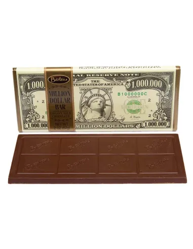 Vous allez adorer cette délicieuse barre au chocolat au lait crémeux. Idéal comme cadeau à offrir, la barre de chocolat de 57g se présente sous la forme d'un billet d'un million de dollars américain.