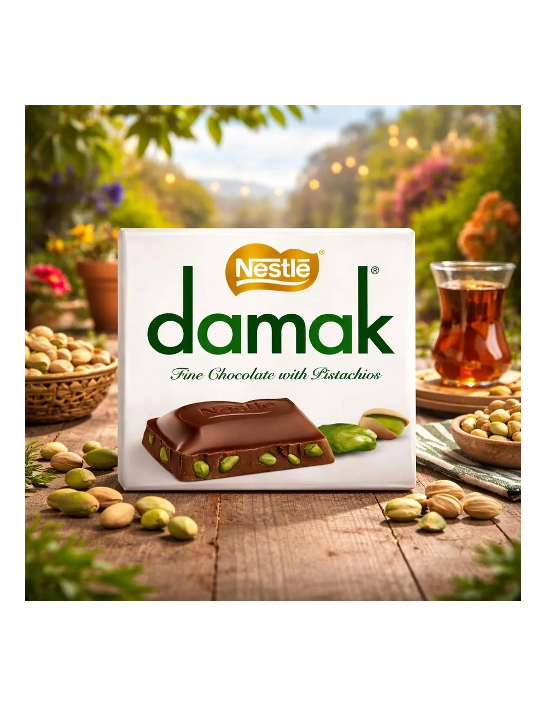 Savourez le mariage parfait entre la finesse du chocolat au lait et la richesse des pistaches turques avec le Nestlé Damak Fine Chocolate with Pistachios.