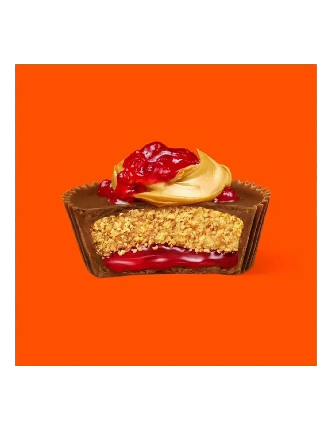 Le sandwich PB&J (Peanut Butter & Jelly) est un pilier de la culture américaine, consommé par des millions d’Américains depuis des générations. Reese’s, marque créée par Harry Burnett Reese en 1928, a réuni ces deux icônes dans une seule confiserie. Disponible en version Strawberry (fraise) et Grape (raisin), la gamme PB&J célèbre une association mythique. Sans gluten et kasher, le King Size PB&J Strawberry prouve que certaines combinaisons sont tout simplement faites pour être réunies.