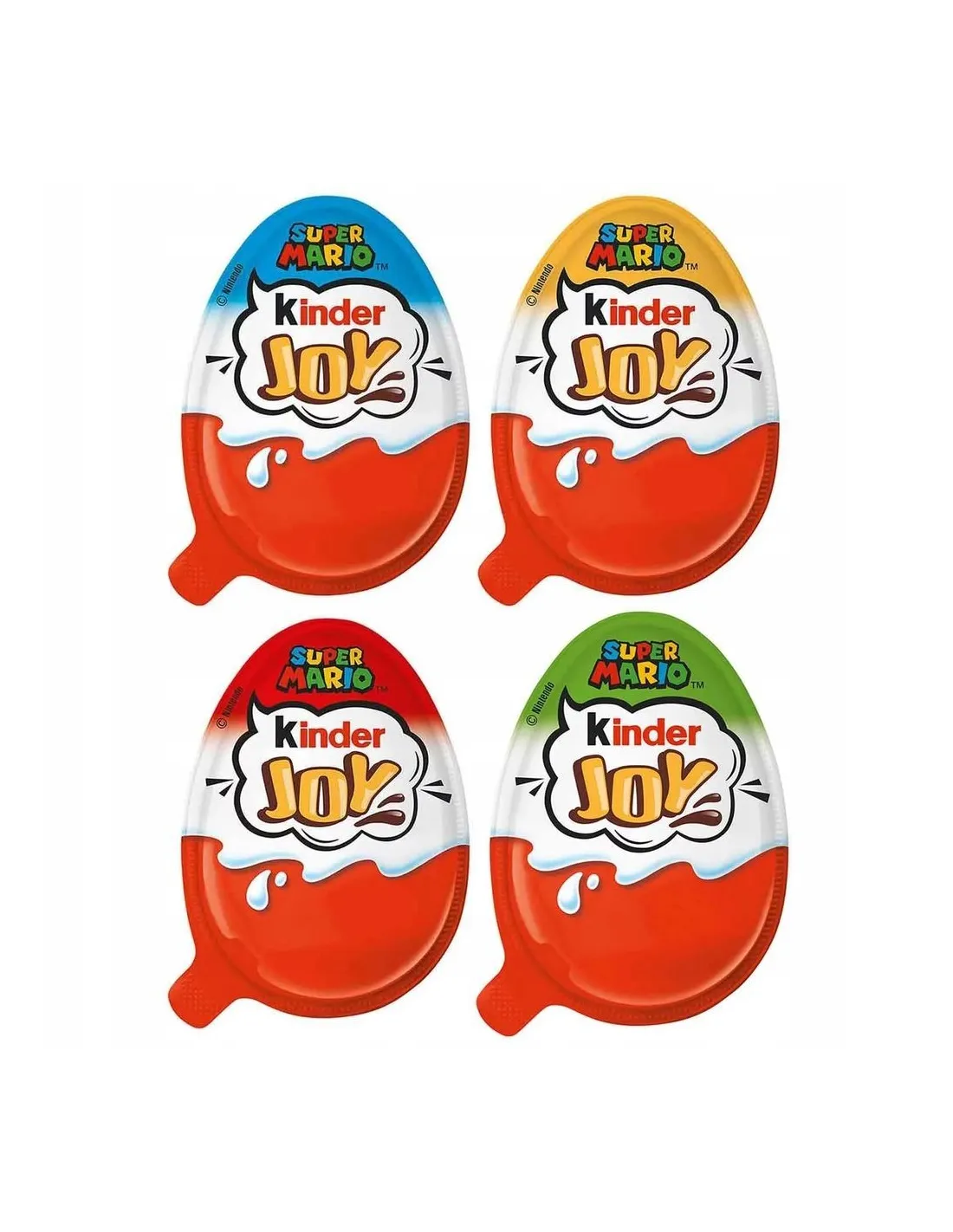Le Kinder Joy Super Mario est une édition limitée née de la collaboration entre Ferrero et Nintendo. Cet œuf surprise combine une délicieuse crème au lait et au cacao avec des billes de gaufrette croustillantes, et cache l'un des 26 jouets collectibles Super Mario à découvrir. Une aventure gourmande au cœur du Mushroom Kingdom !