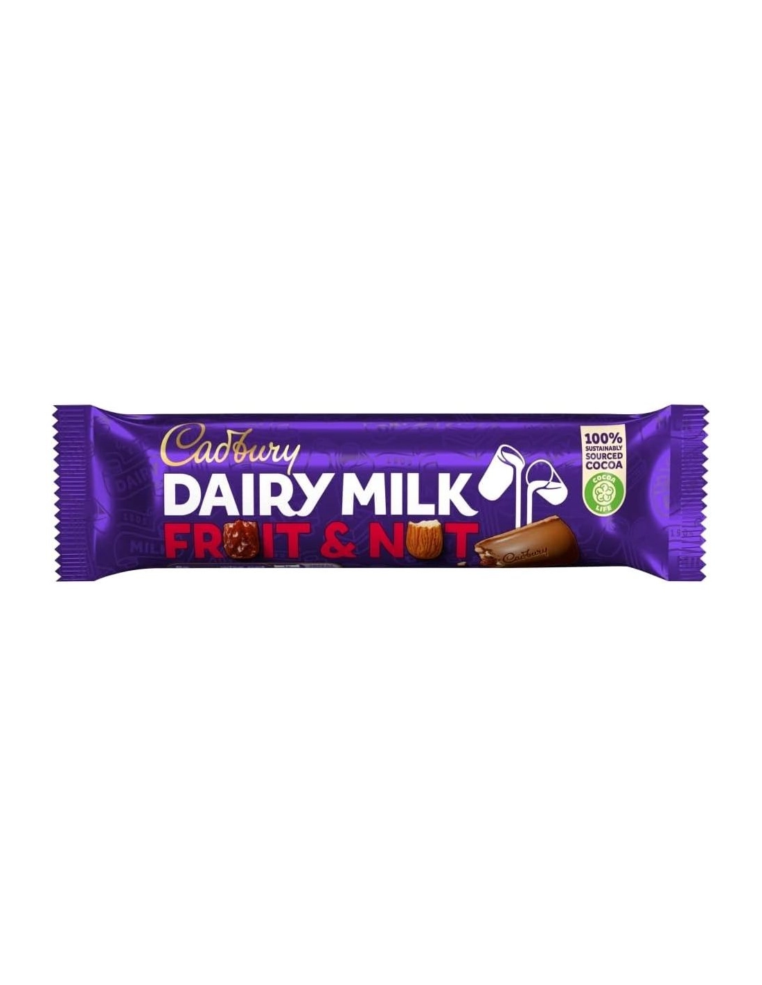 Fondez pour le mariage parfait du moelleux et du croquant avec la légendaire tablette anglaise Cadbury Dairy Milk Fruit & Nut ! Dégustez un délicieux chocolat au lait onctueux, généreusement garni de raisins secs tendres et d'amandes croquantes. Un classique irrésistible de la confiserie britannique !