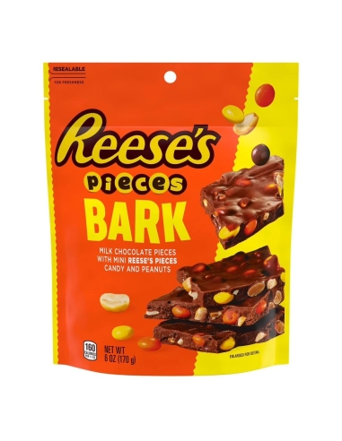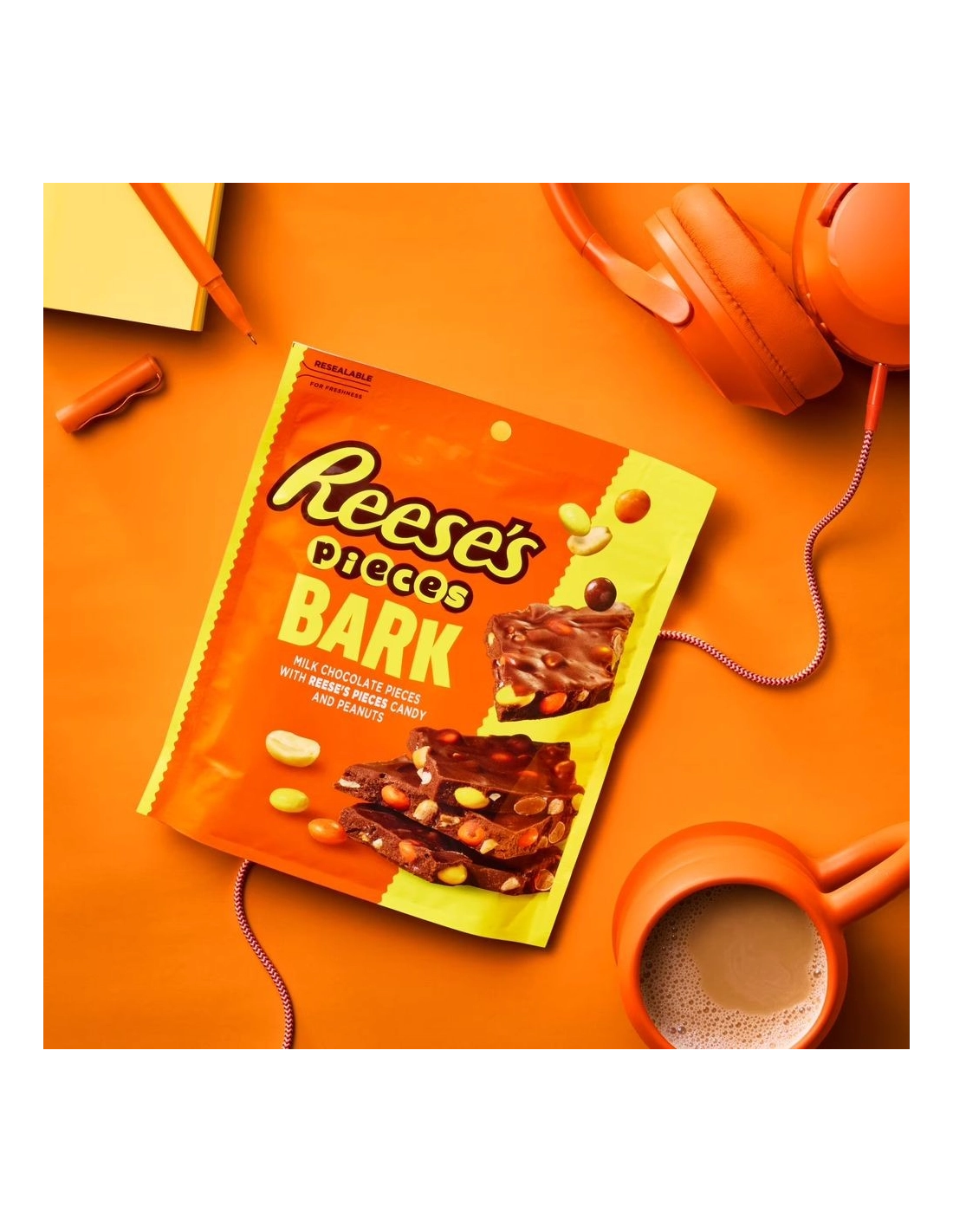 Fondez de plaisir avec le Reese's Pieces Bark (170g) ! Découvrez d'irrésistibles et généreux morceaux de chocolat au lait onctueux, incrustés de véritables Reese's Pieces croquants. L'alliance parfaite et décadente du cacao et du beurre de cacahuète pour une pause 100% américaine !