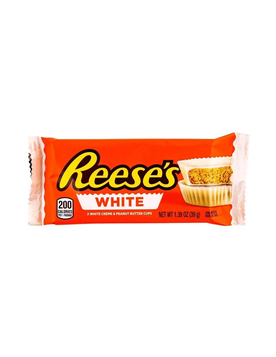 La version des Reese's Peanut Butter au chocolat blanc est une saveur très gourmande ! Les biscuits Reese's White sont recouverts d'une couche craquante de chocolat blanc, d'un coeur fondant et onctueux de beurre de cacahuètes.