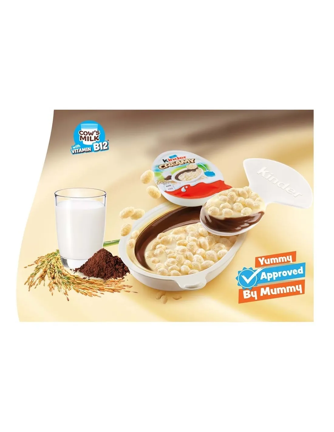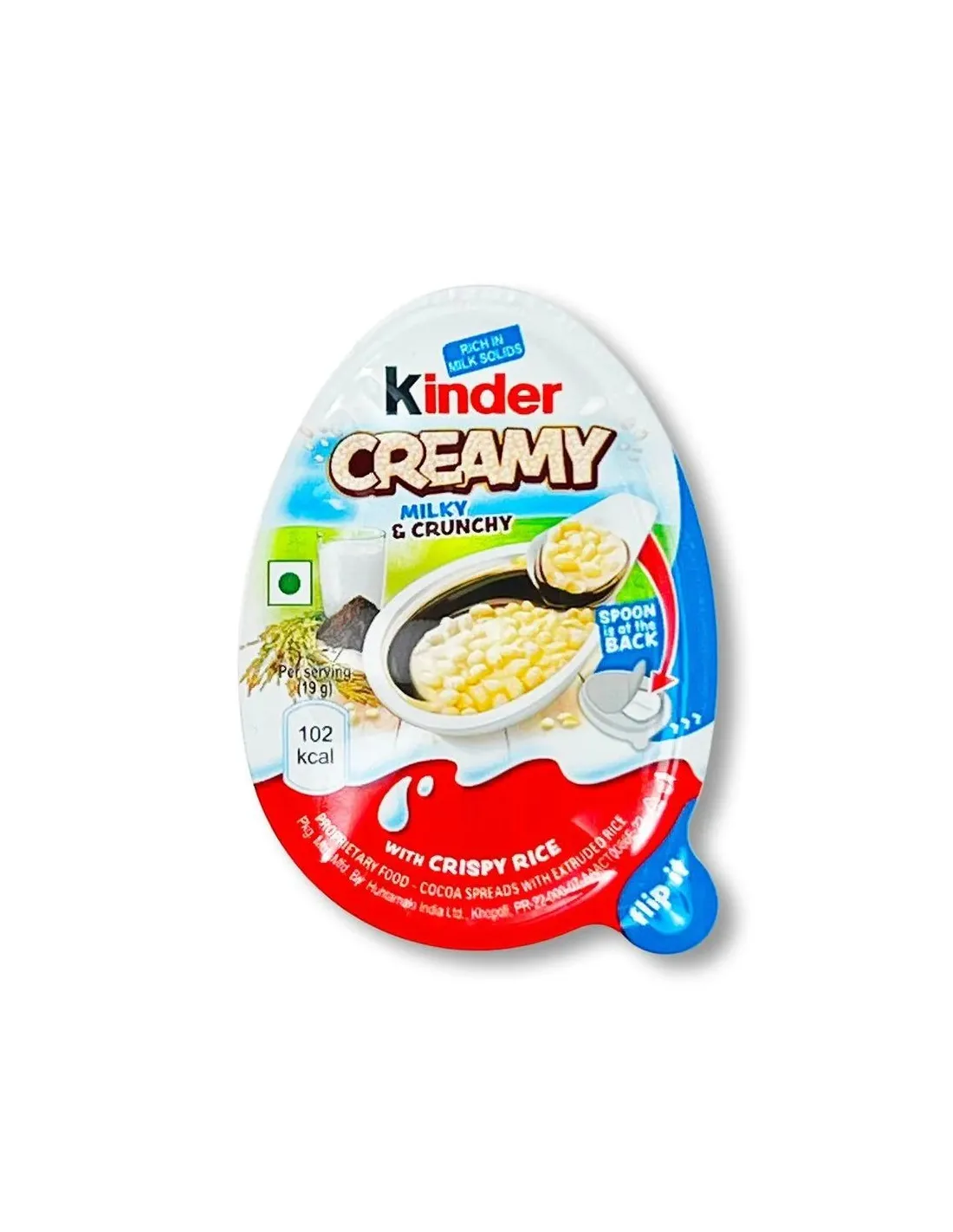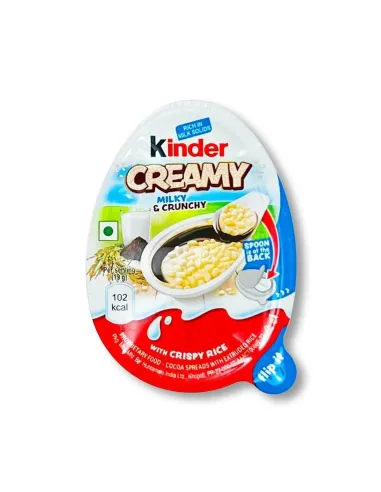 Kinder Creamy Milky & Crunchy est un chocolat unique et délicieux composé de riz croustillant, de crème onctueuse riche en lait de vache avec de la vitamine B12 et d'une délicieuse crème au cacao. Produit commercialisé en Inde et à Dubaï uniquement.