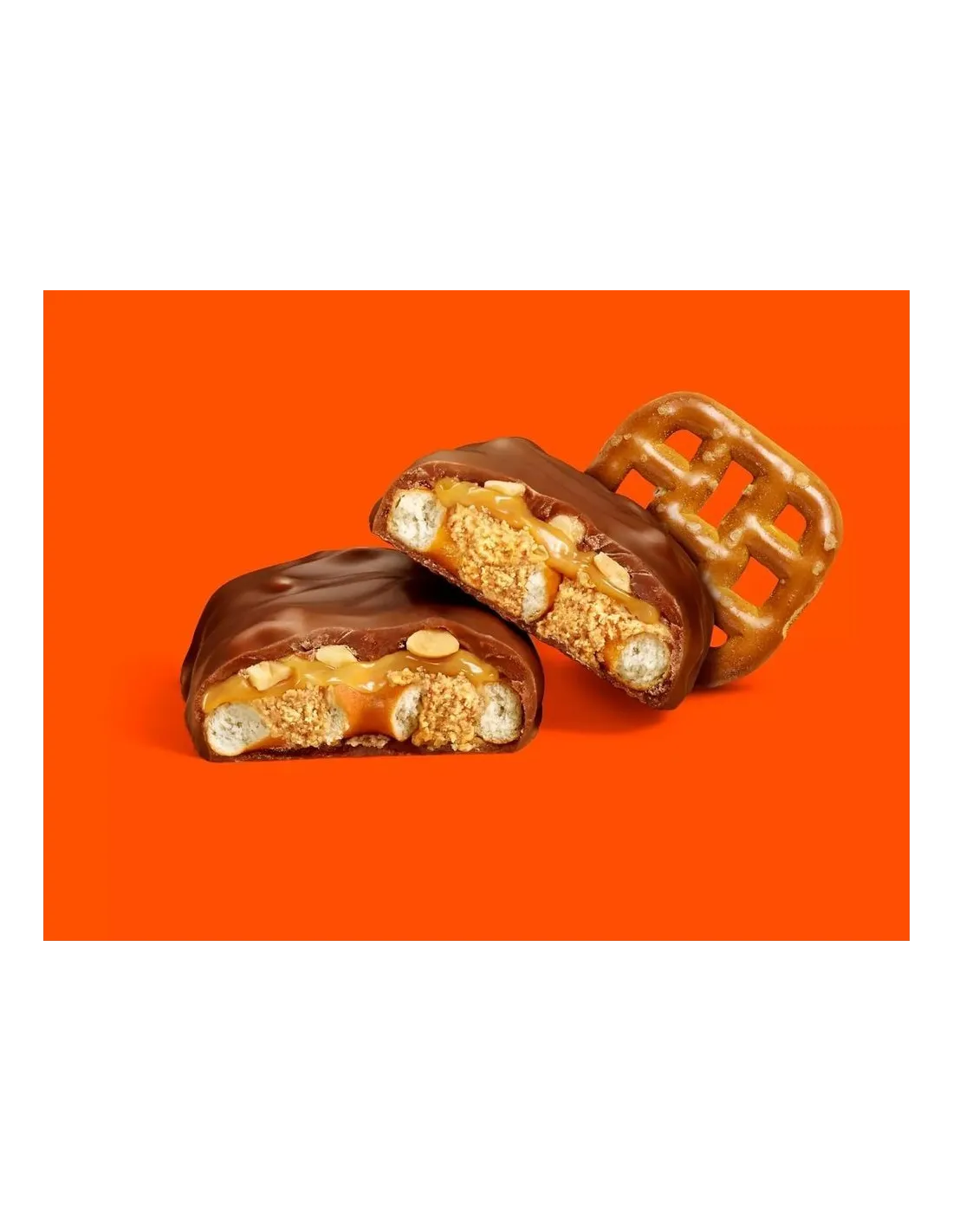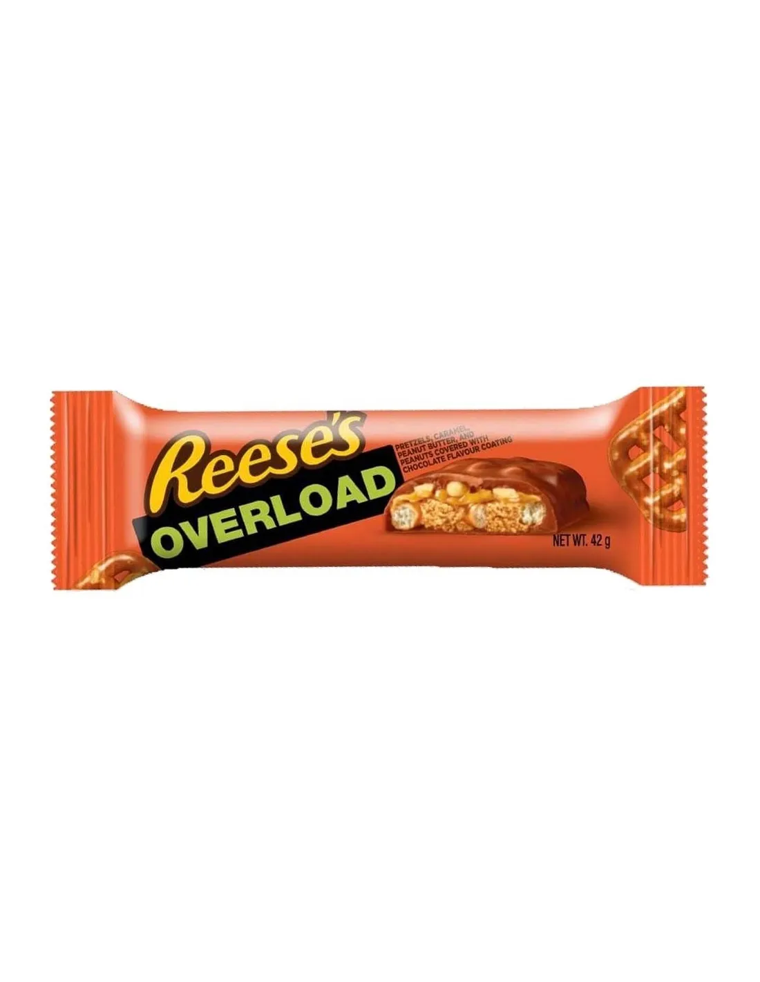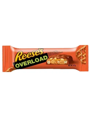 Reese's nous surprend avec cette barre chocolatée Reese's Overload composée de beurre de cacahuètes, pretzels, caramel et bien entendu des cacahuètes croustillantes à l'intérieur. Elle est délicieuse, et séduira tous les fans de la marque Reese's.