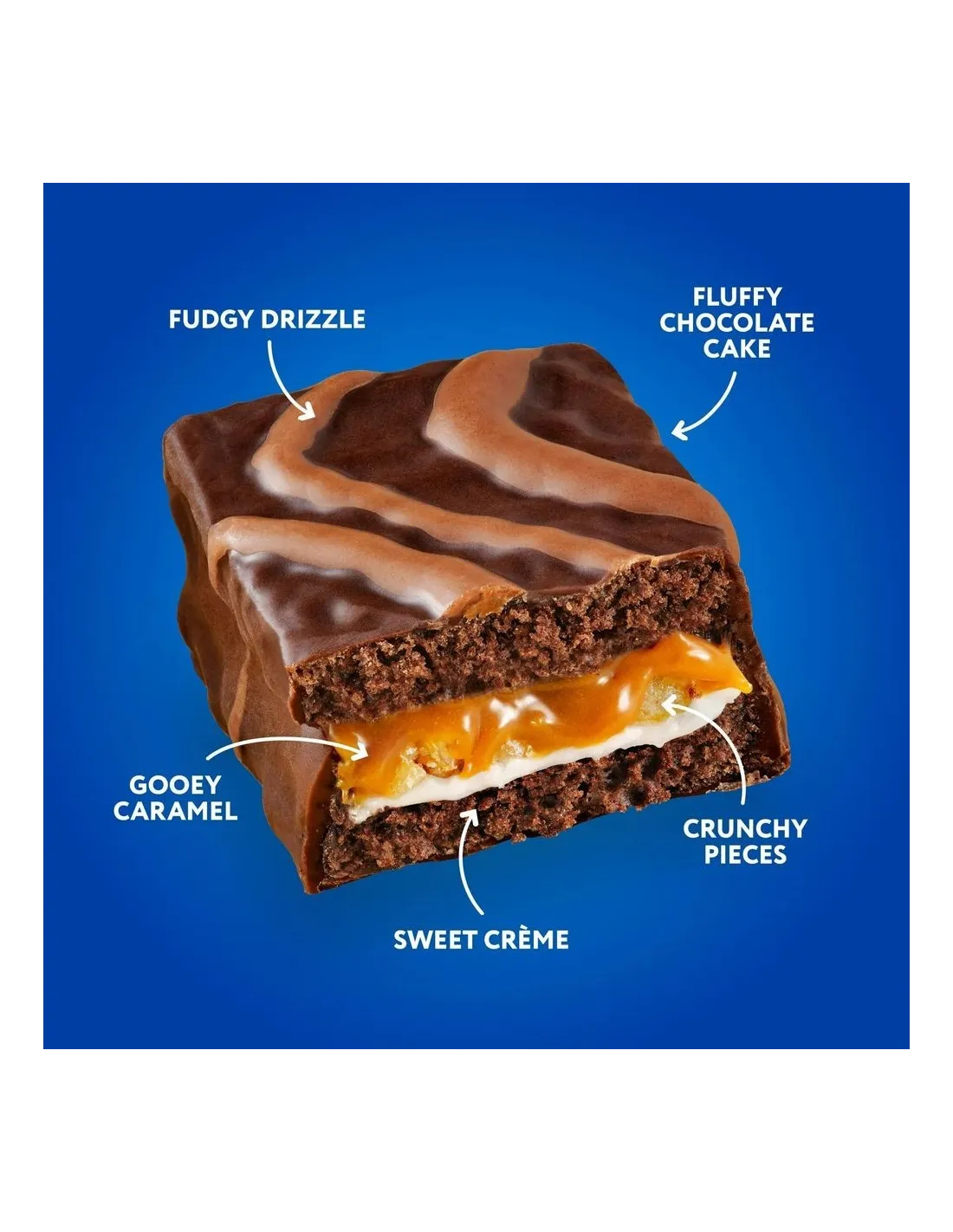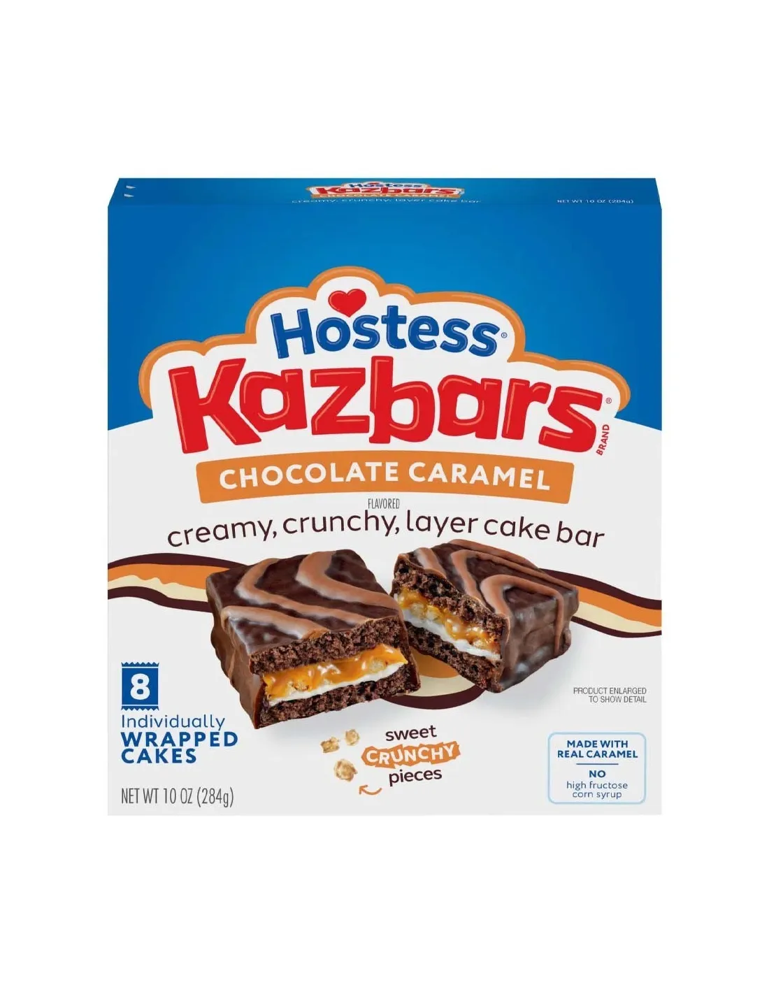 La Hostess Kazbars Chocolate Caramel est une barre ultra-gourmande qui combine plusieurs textures et saveurs : un cœur tendre de caramel, des morceaux de biscuits croustillants, le tout enrobé de chocolat au lait onctueux.