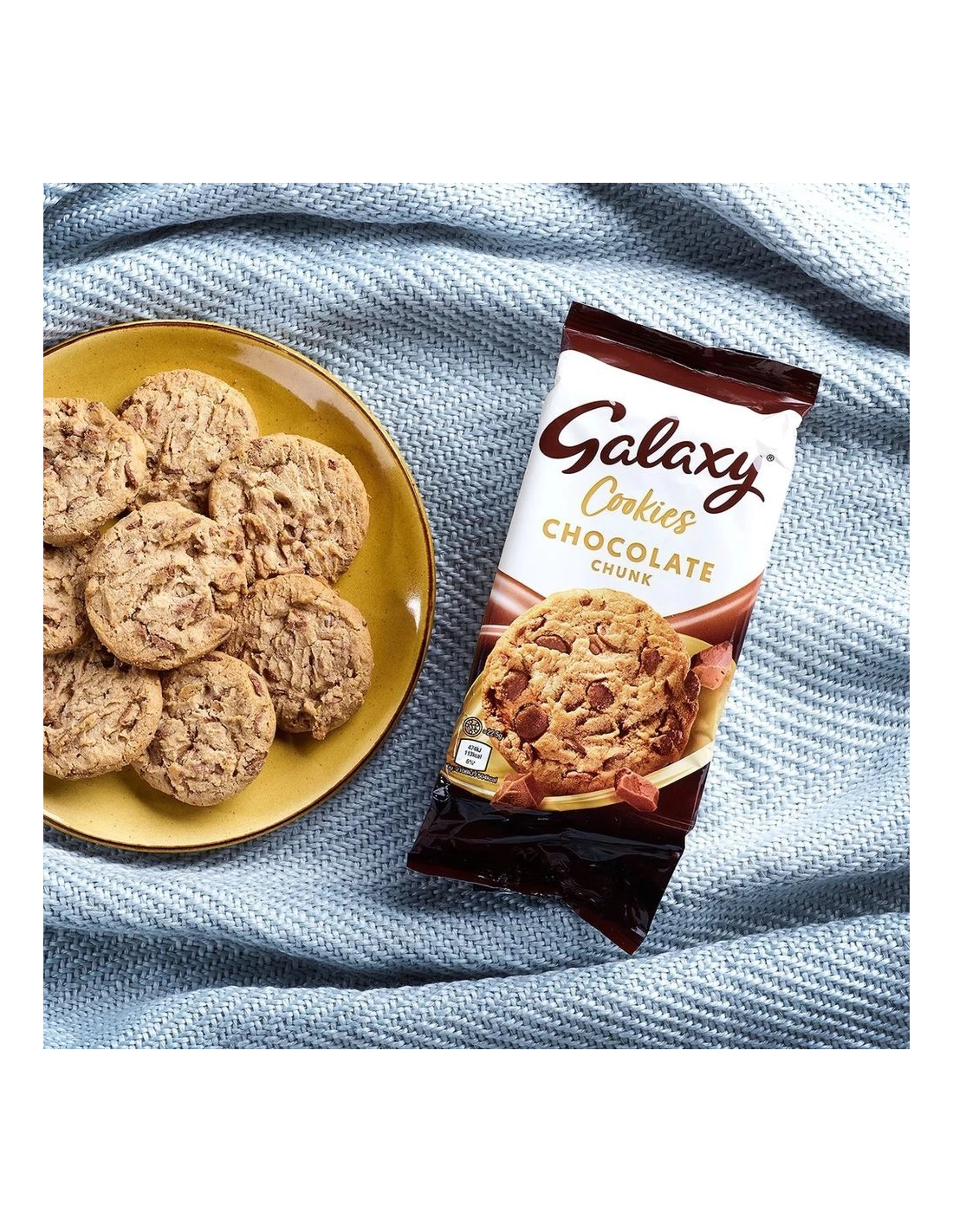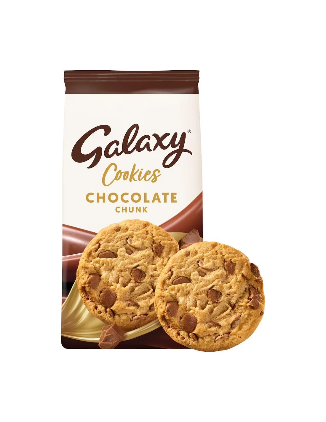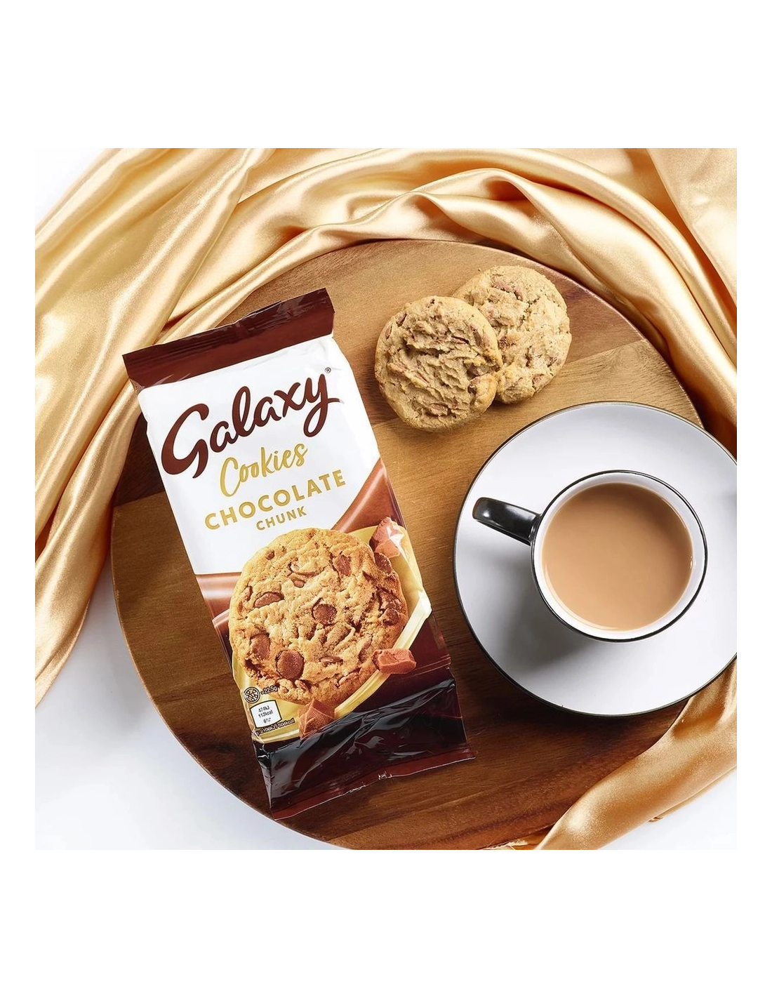Traversez la Manche avec les Galaxy Cookies Chocolate Chunk — la rencontre parfaite entre un biscuit doré à souhait et l'onctuosité légendaire du chocolat Galaxy, célèbre pour sa texture "soyeuse" unique au Royaume-Uni.