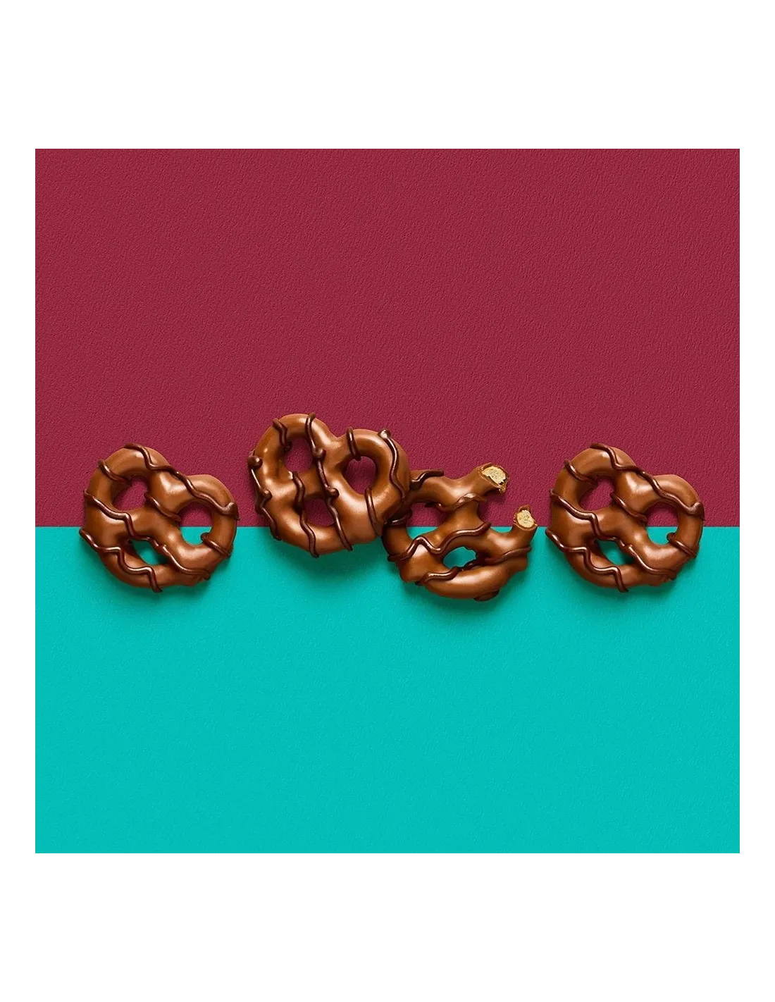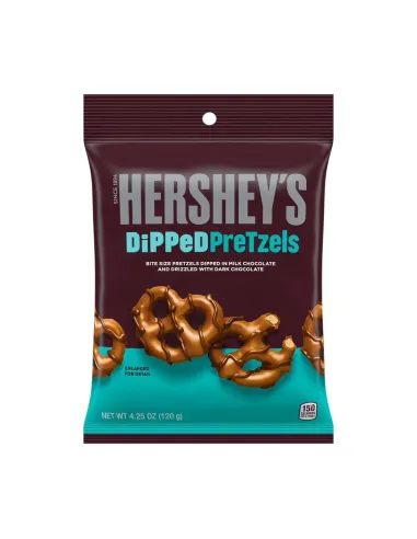 Alliance audacieuse des bretzels salés avec du chocolat noir et chocolat au lait, découvrez sans attendre les DIPPED PRETZELS MILK & DARK CHOCOLATE de la marque HERSHEY'S. Enrobés généreusement d'un bon chocolat au lait onctueux, ils sont également recouverts d'un filet de chocolat noir pour vous faire fondre de plaisir ! Croquants, gourmands et délicieusement fondants, c'est la combinaison parfaite pour une collation sucrée et salée !