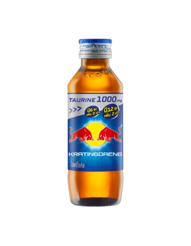 C'est ici que tout a commencé ! Avant de conquérir le monde entier sous le nom de Red Bull, l'empire de l'énergie est né en Thaïlande avec le Krating Daeng (qui signifie littéralement "Taureau Rouge"). Avec cette édition Original Blue Cap (bouchon bleu) de 150ml, nous vous proposons de déguster la recette classique et fondatrice de cette boisson mythique.