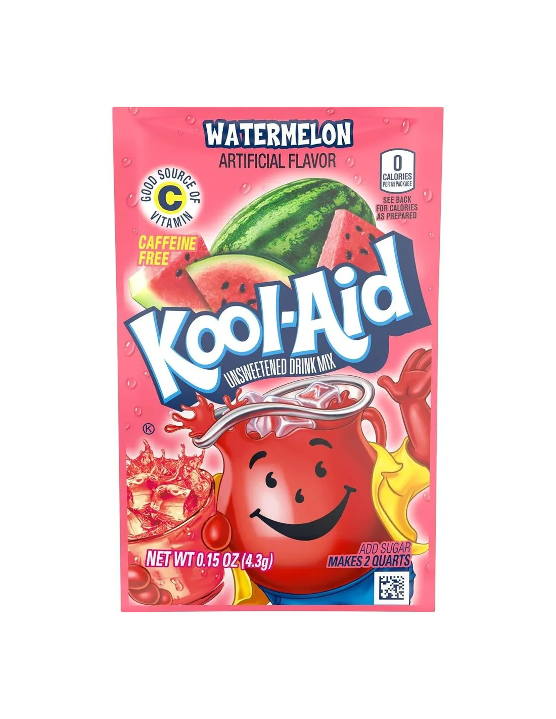 La saveur Watermelon de Kool-Aid est au bon goût de la pastèque. Les sachets de poudre Kool-Aid sont source de vitamines C, et sans caféine. Toutes les poudres Kool-Aid sont sans sucre. Vous pouvez vous en servir pour différentes boissons, aussi bien comme une boisson pour vous rafraîchir qu'un accompagnement pour vos cocktails.