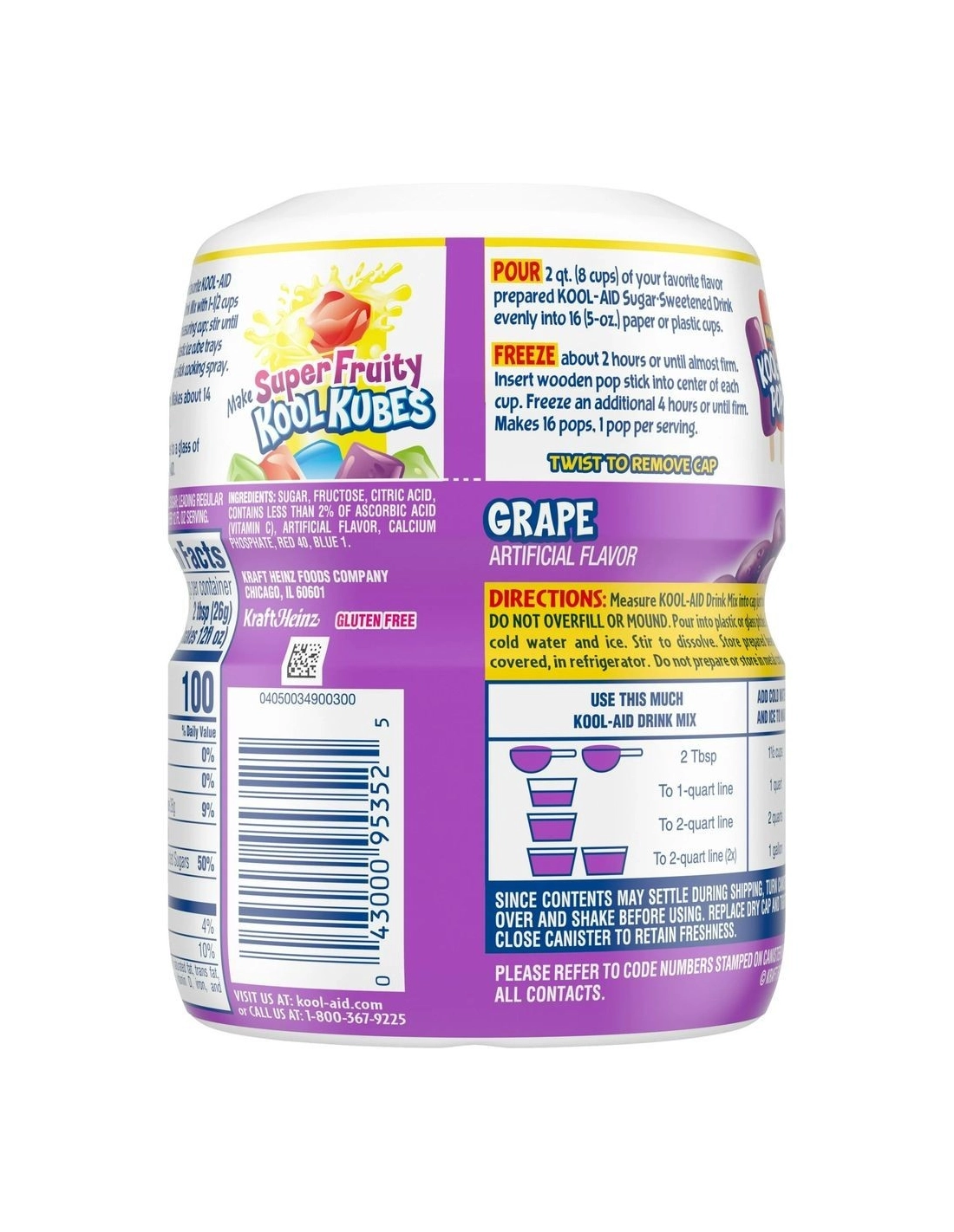 Le roi des grandes tablées : Très économique, cette grosse boîte de poudre Kool-Aid permet de préparer près de 8 litres de boisson ! Contrairement aux petits sachets classiques, cette version est déjà sucrée et dotée d'un couvercle doseur très pratique. Remplissez simplement le bouchon jusqu'au trait, versez dans un pichet d'eau bien froide, et profitez. Le gros plus ? Cette poudre au raisin contient 35% de sucre en moins que les sodas traditionnels, tout en étant une excellente source de vitamine C.