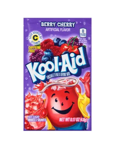 La saveur Cherry Berry de Kool-Aid n'est autre qu'un mélange baie et de cerises. Les sachets de poudre Kool-Aid sont source de vitamines C, et sans caféine. Toutes les poudres Kool-Aid sont sans sucre. Vous pouvez vous en servir pour différentes boissons, aussi bien comme une boisson pour vous rafraîchir qu'un accompagnement pour vos cocktails.