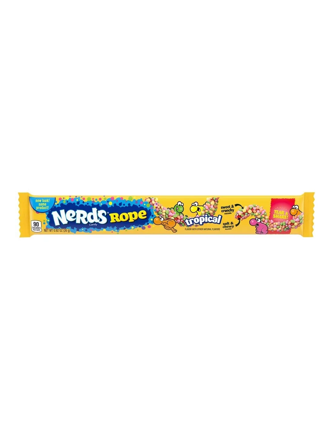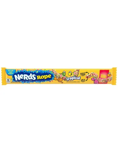 Enroulés autour d'un bâtonnet en gélatine, découvrez les bonbons ROPE TROPICAL de la marque NERDS. A la fois élastiques et croustillants, c'est un véritable mélange de saveurs fruitées en bouche et de textures étonnantes. Craquez pour ces petites billes croquantes qui vont vous exploser en bouche ! Au bon goût des fruits tropicaux, dégustez de petits bonbons acidulés aux goûts surprenants !