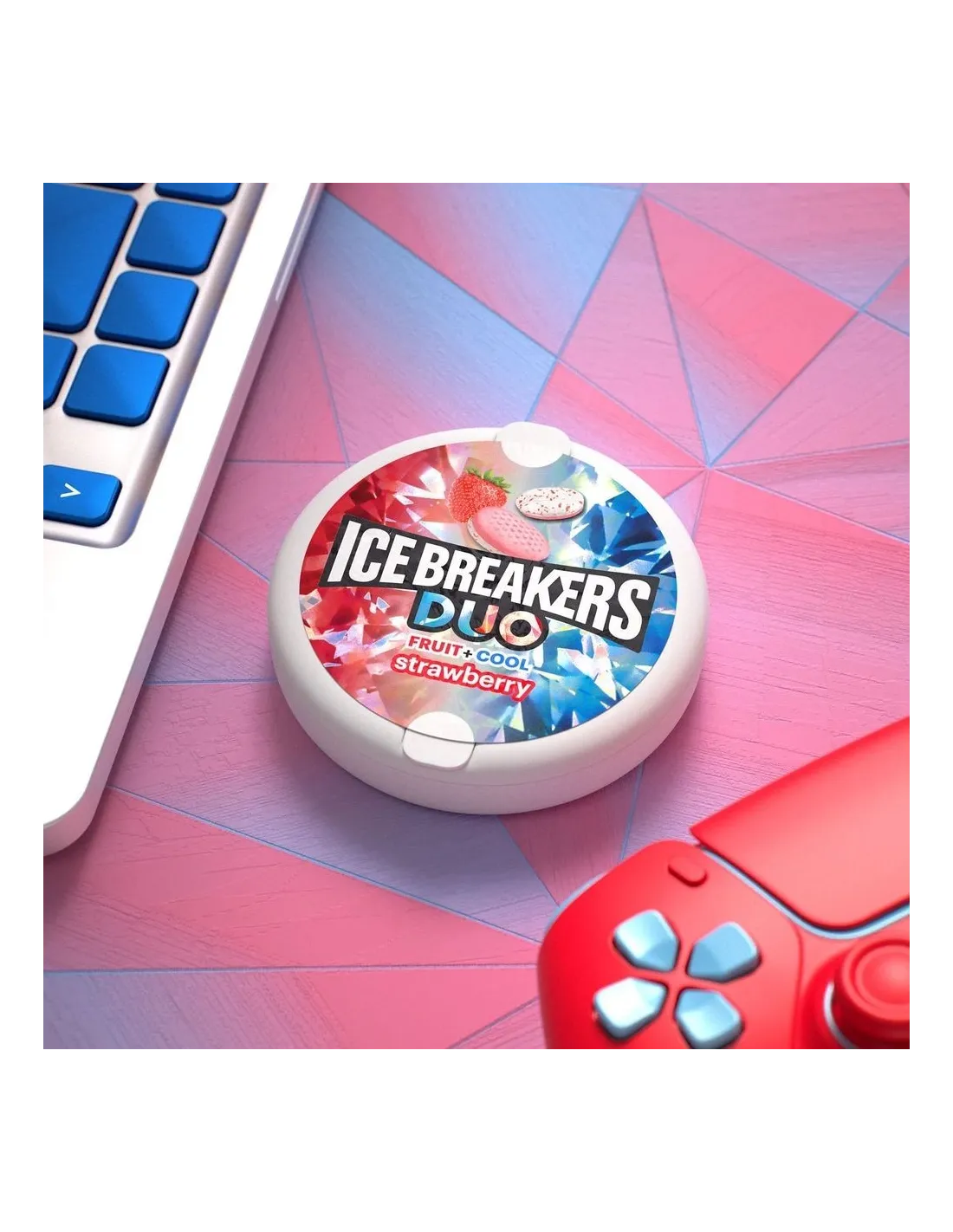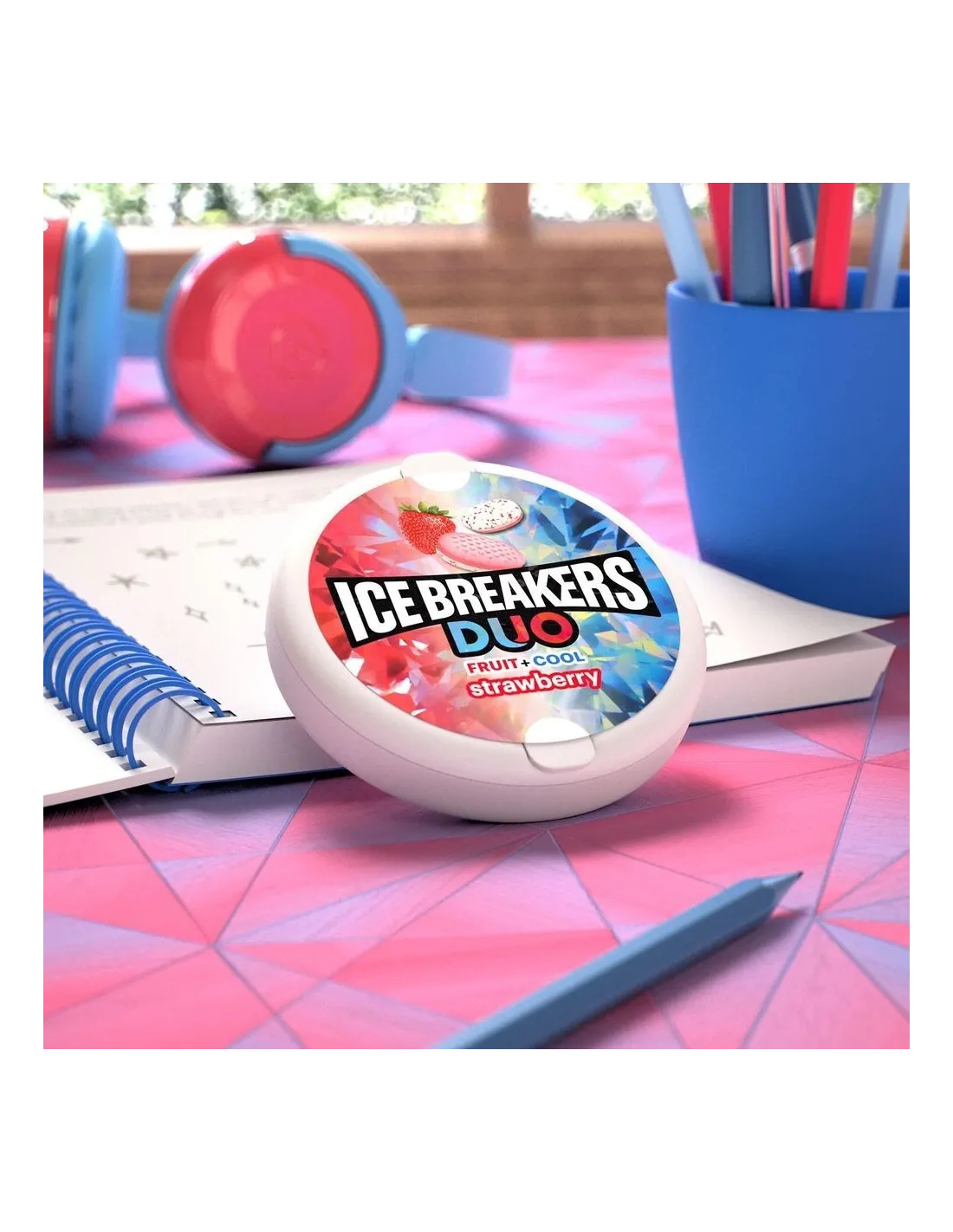 C'est la boite de bonbon parfaite pour raviver vos papilles avec les bonbons américains Ice Breakers Duo Strawberry. Un duo de menthe et de fraise pour une fraîcheur immédiate dans la bouche.