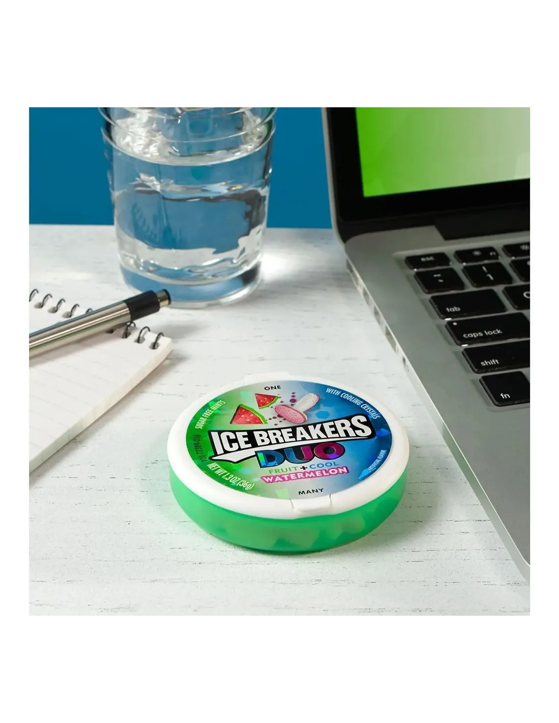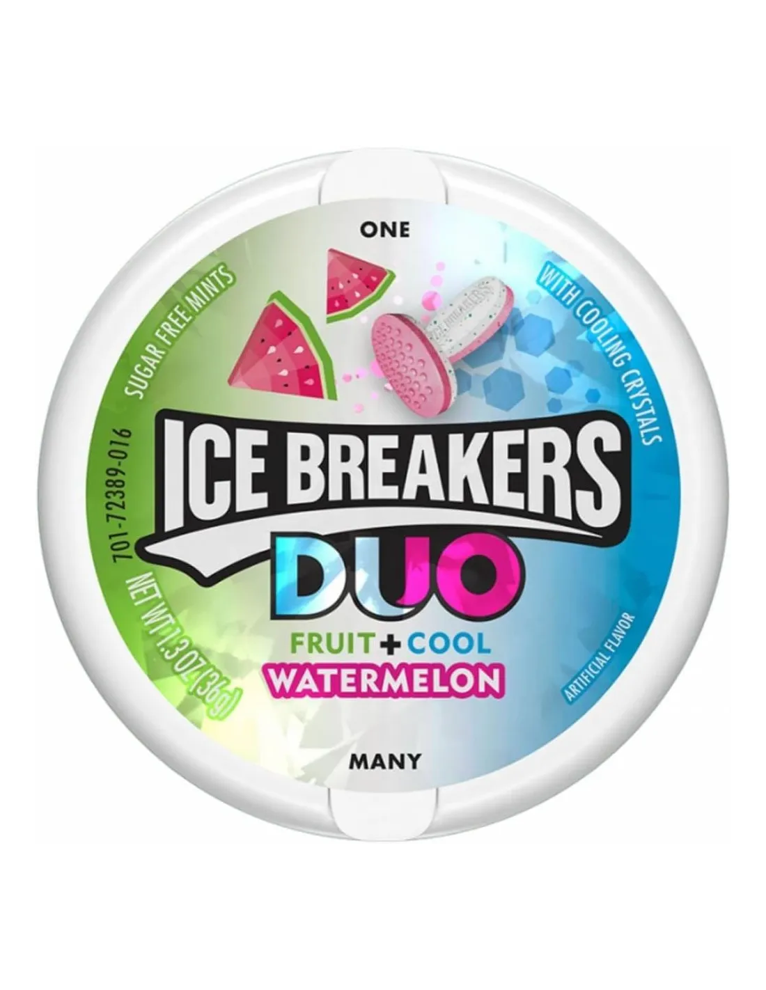 C'est la boite de bonbon parfaite pour raviver vos papilles avec les bonbons américains Ice Breakers Duo Watermelon. Un duo de menthe et de pastèque pour une fraîcheur immédiate dans la bouche.