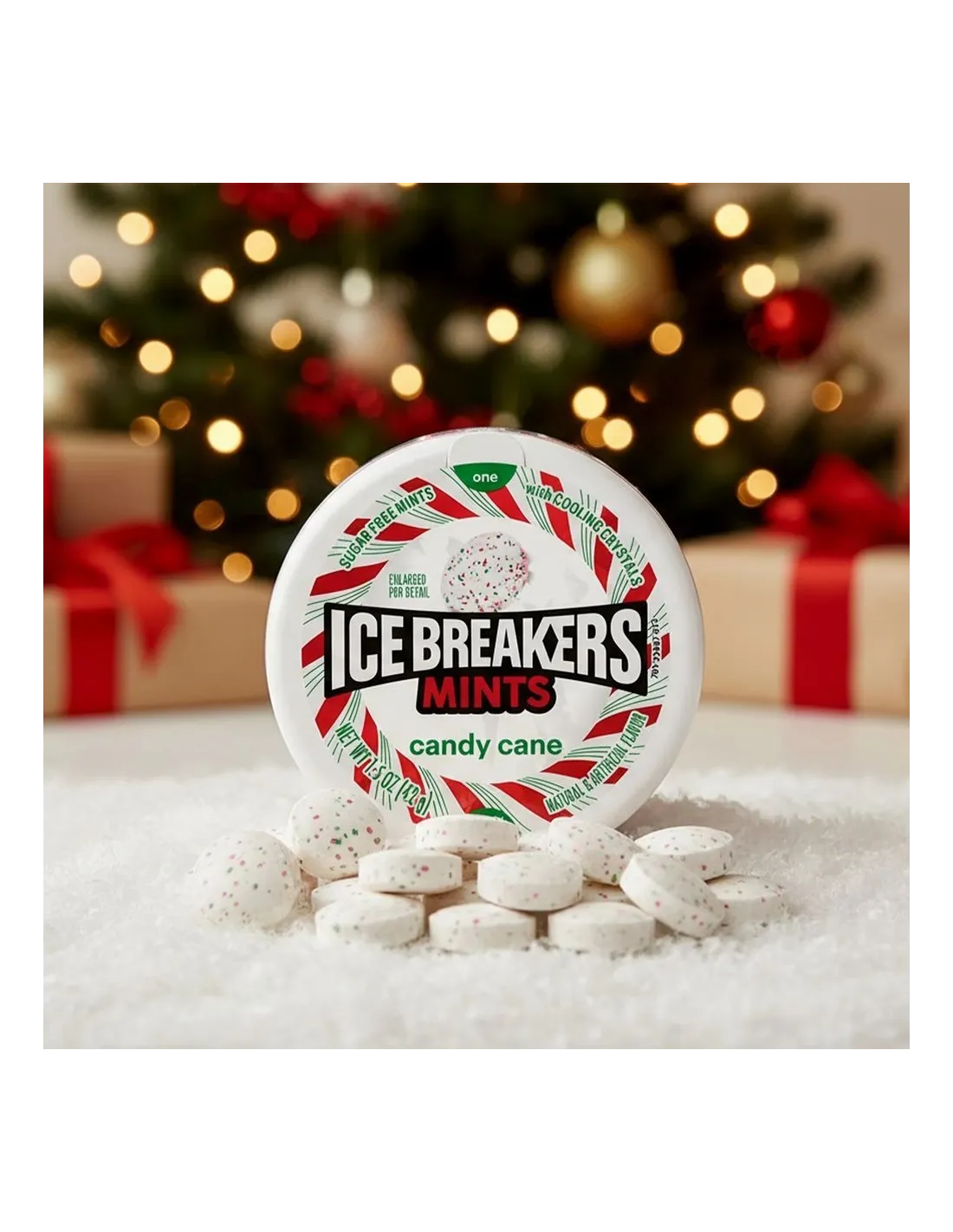Cette édition spéciale des célèbres pastilles américaines Ice Breakers capture toute la magie de Noël avec un mélange parfait de menthe poivrée sucrée et rafraîchissante, inspirée des fameuses cannes en sucre rouges et blanches.
