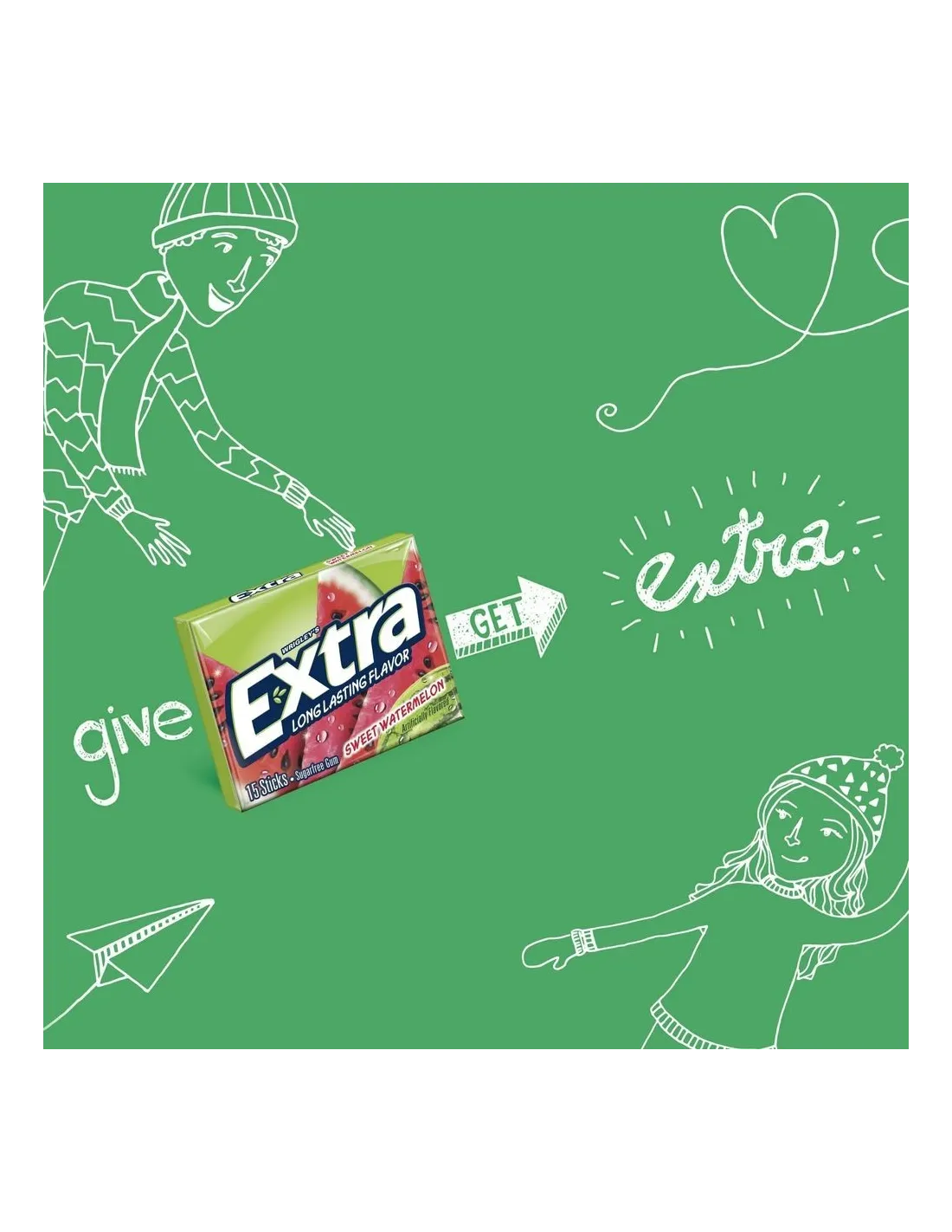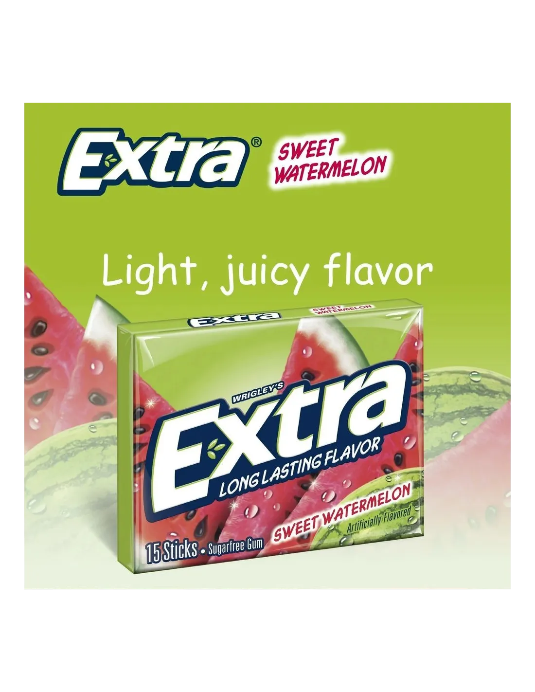 Extra Gum Sweet Watermelon, c’est la douceur fruitée de la pastèque dans un chewing-gum irrésistible ! Un goût sucré, juteux et fun, avec la fraîcheur longue durée Extra.