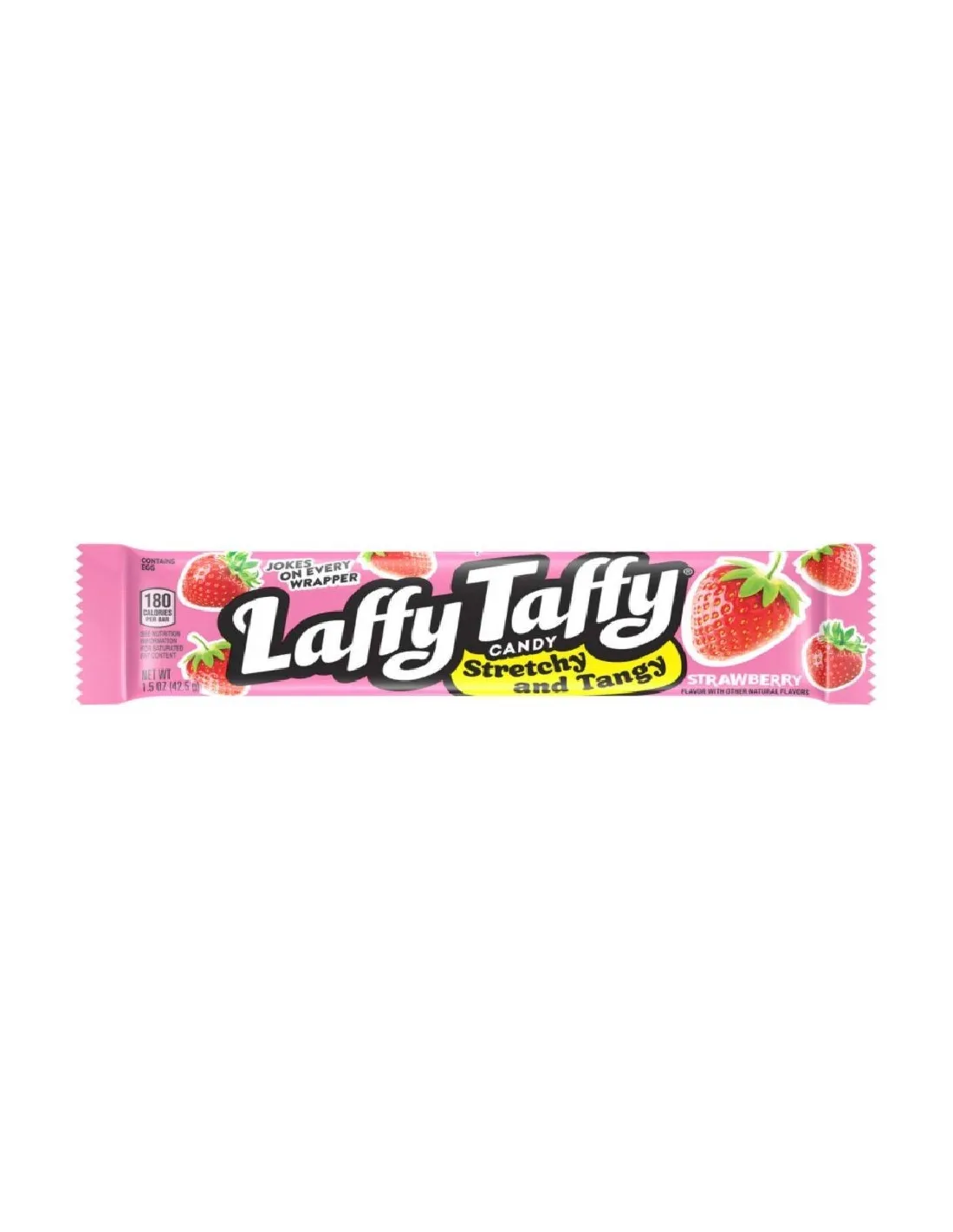 Importés directement des États-Unis, les Laffy Taffy Strawberry sont parfaits pour une pause sucrée, un moment fun, une soirée entre amis ou pour compléter un candy bar coloré. Comme toujours, chaque emballage inclut une petite blague imprimée, signature humoristique de la marque Laffy Taffy — un détail qui fait fondre petits et grands.
