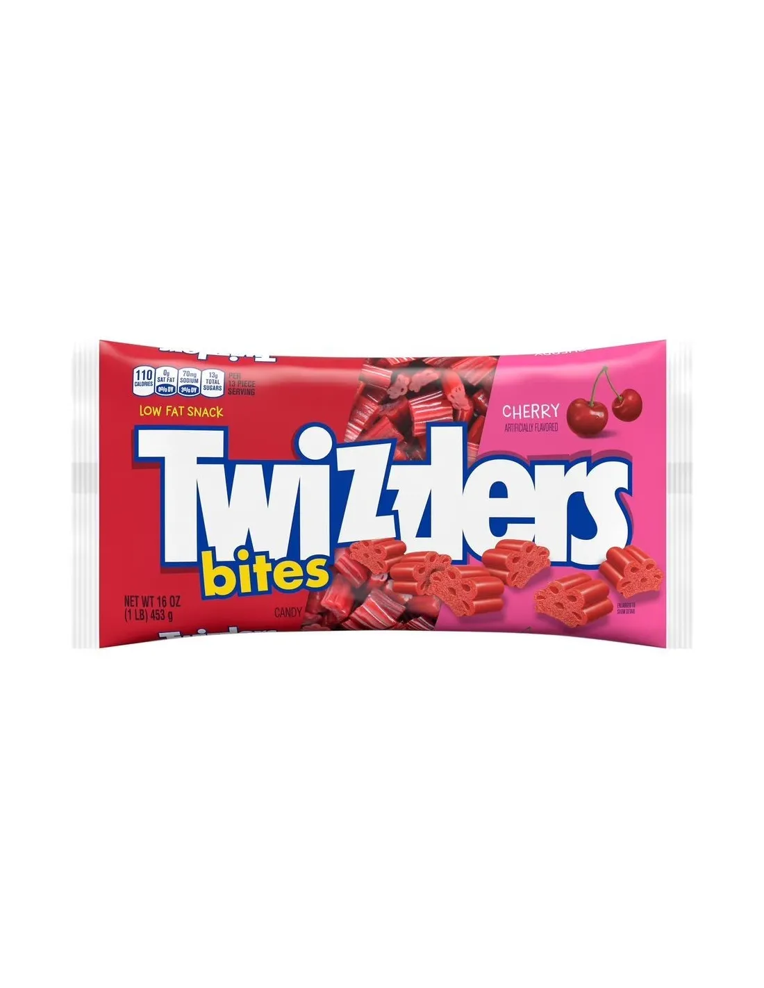 Les Twizzlers Bites Cherry sont la version bouchées des célèbres réglisses américaines à la cerise. Petits morceaux moelleux et fruités, parfaits pour grignoter sans fin. Le sachet 453g offre une quantité généreuse de ce snack iconique des cinémas américains.
