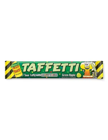 Le Toxic Waste Taffetti Green Apple combine un taffy moelleux et étirable avec l'acidité légendaire de la marque et des éclats de confettis croquants colorés. Saveur pomme verte intense et piquante, texture unique qui alterne fondant et croustillant à chaque bouchée. Le défi sour version taffy !