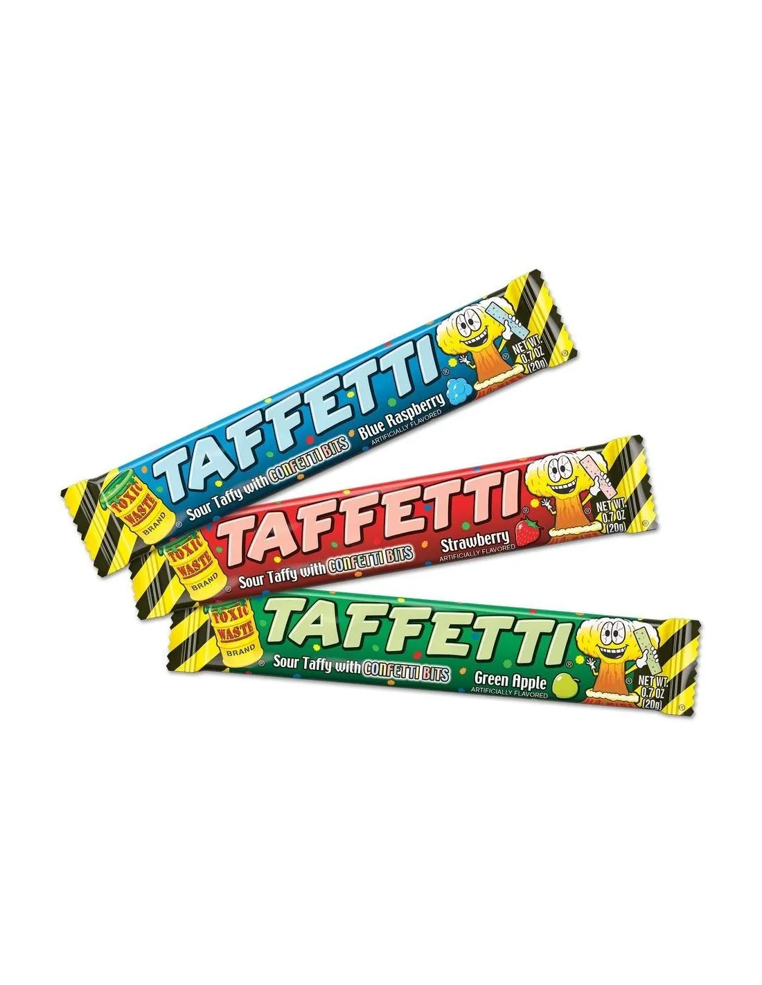 Disponible également en Blue Raspberry (framboise bleue) et Strawberry (fraise), la gamme Taffetti complète l'arsenal Toxic Waste aux côtés des bonbons durs en drums, des Slime Lickers et des Sour Smog Balls. Emballé individuellement, format idéal pour le partage, les défis entre amis, les pochettes surprises ou les moments de gourmandise solo.