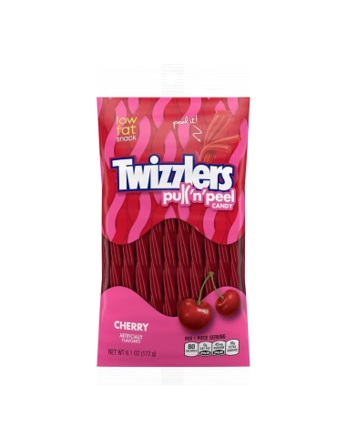 Les Twizzlers Pull ’n’ Peel Cherry sont une déclinaison ludique des célèbres bonbons Twizzlers. Chaque pièce se compose de plusieurs brins fins qui peuvent être séparés avant dégustation, offrant une expérience interactive et progressive. Leur saveur cerise est sucrée, reconnaissable et fidèle à l’identité américaine de la marque, tandis que la texture reste souple et légèrement élastique.