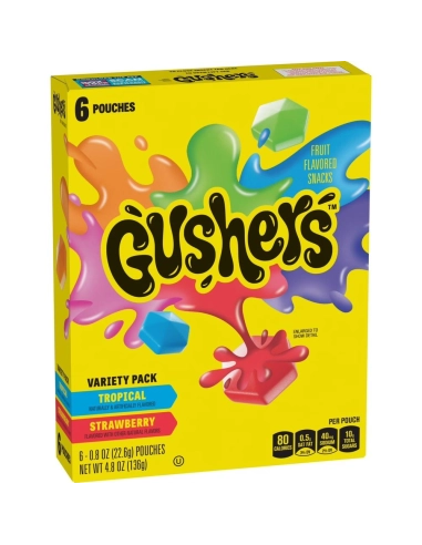 Découvrez le Gushers Variety Pack : l'assortiment parfait des célèbres bonbons américains au cœur liquide explosif ! Une boîte ultra-pratique contenant des sachets individuels aux saveurs fruitées variées pour ne plus avoir à choisir.