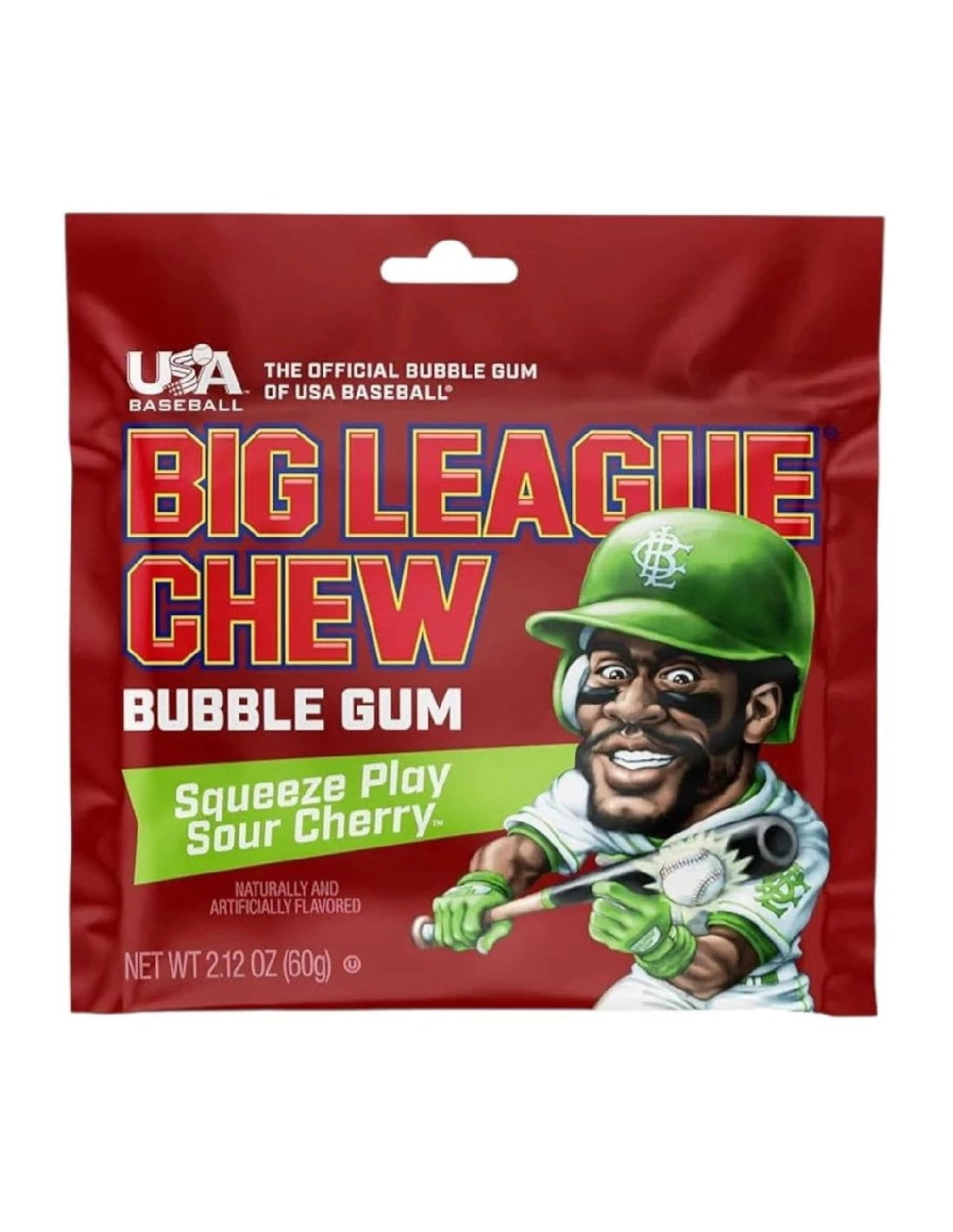 Entrez sur le terrain avec le légendaire chewing-gum Big League Chew Squeeze Play Sour Cherry ! Présenté dans son iconique sachet souple inspiré des joueurs de baseball américains, ce "bubble gum" effiloché vous offre une façon unique et ludique de le déguster. Préparez-vous à une explosion de saveurs avec son goût irrésistible et piquant de cerise acidulée, et faites les plus grosses bulles de votre vie !