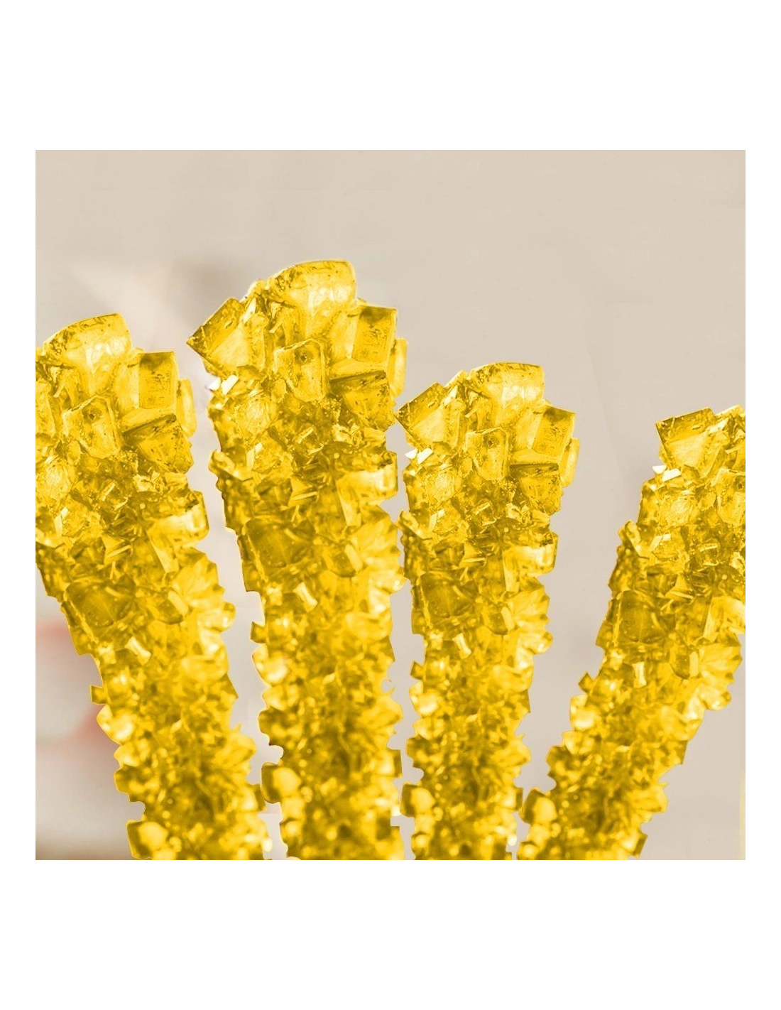 Chez Pop's America on aime : Le mariage parfait entre l'histoire de la confiserie et la gourmandise fruitée ! Savoir que ces cristaux sont cultivés de façon artisanale rend la dégustation encore plus magique. Le goût de banane est un grand classique américain qui fonctionne à merveille avec le croquant extrême du sucre candi. Le bâtonnet est généreux (16,5 cm, ça en jette !), et la couleur jaune fluo est tout simplement parfaite pour donner du relief à un bar à bonbons.