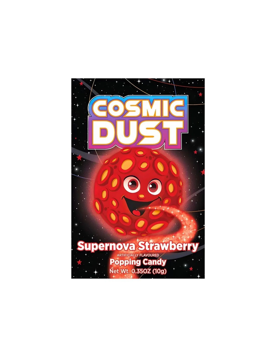 Préparez-vous à une explosion stellaire avec le Cosmic Dust Supernova Strawberry Popping Candy ! Ce petit sachet au design intergalactique renferme l'une des confiseries les plus amusantes de notre enfance : un véritable sucre pétillant qui crépite et sautille sur la langue. Dans cette version Supernova Strawberry, laissez-vous transporter par le parfum doux, sucré et universellement adoré de la fraise. Un feu d'artifice gustatif et fruité qui propulsera vos papilles directement dans les étoiles !