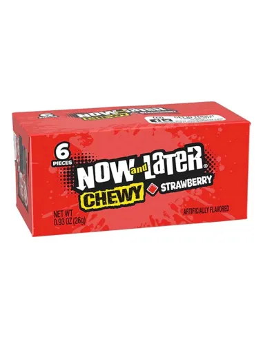 C'est un best-seller aux USA, les bonbons de la marque Now and Later sont réputés pour leurs textures moelleuses et leurs goûts fruités. Chaque paquet contient 6 bonbons Chewy Strawberry à la fraise emballés individuellement. Si vous connaissez les bonbons Krema, vous retrouverez une ressemblance très forte entre les deux.