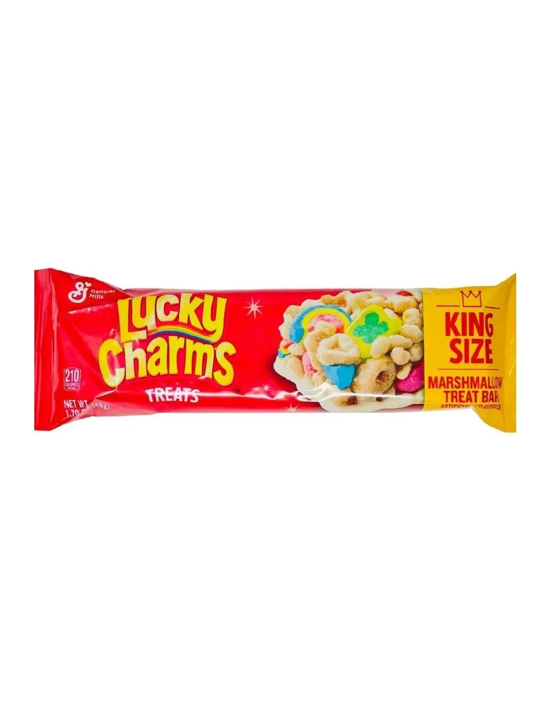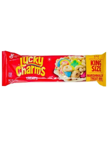 Les Lucky Charms Treats sont des barres de céréales croustillantes composées de marshmallows aux couleurs de l'arc en ciel. Les petits marshmallows sont directement intégrés à l'intérieur. Chaque paquet contient 1 barre de céréales. Idéal pour le petit déjeuner ou pour un goûter.