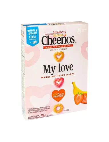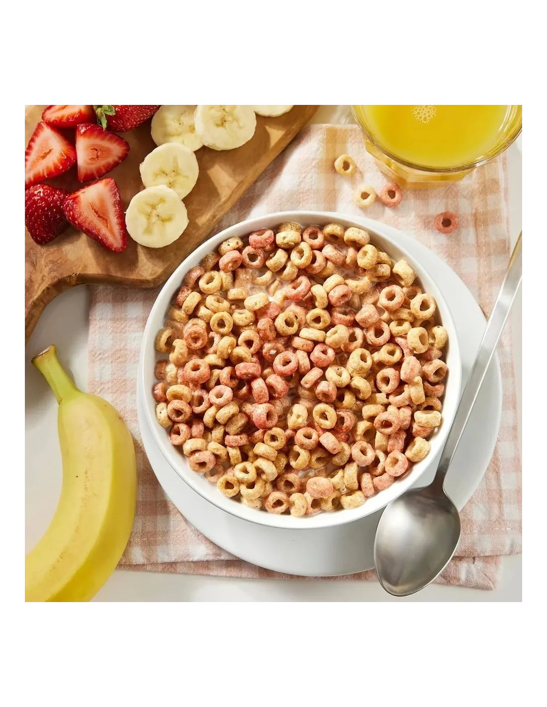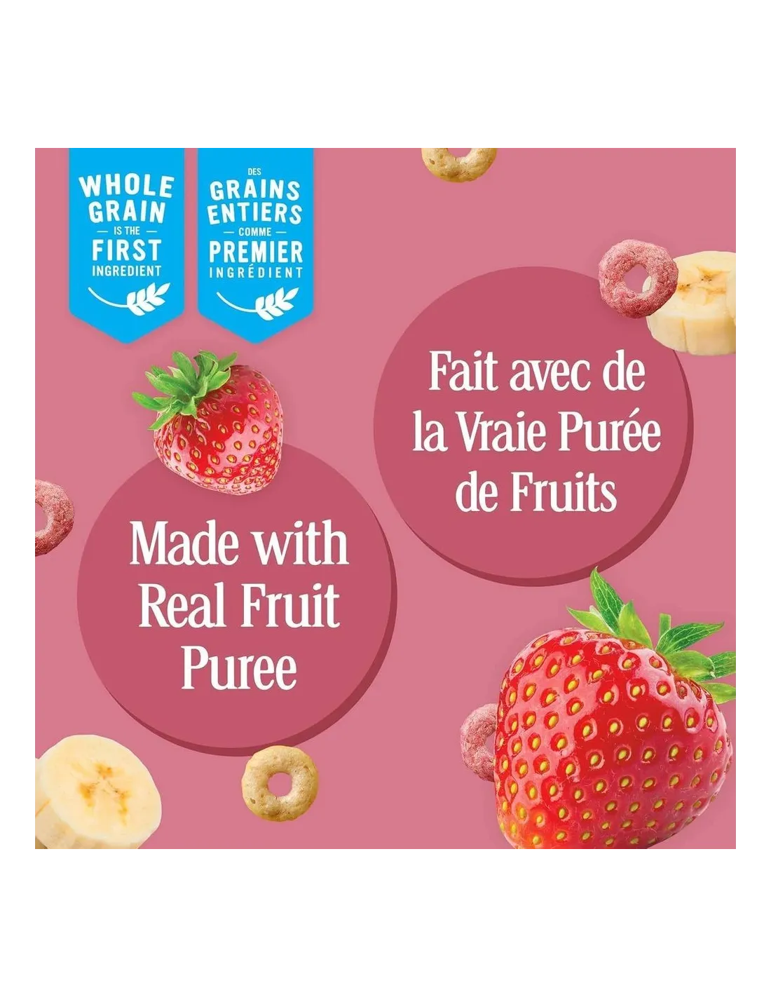 Cette version fruitée du célèbre petit-déjeuner américain combine les céréales complètes Cheerios avec de délicieuses notes de fraise sucrée et de banane onctueuse.