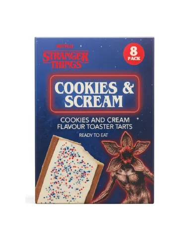 Les Toaster Tarts Stranger Things Cookie & Scream revisitent la saveur classique cookies & cream avec une touche horrifique digne de l'Upside Down. Cette édition collector propose une pâte croustillante renfermant un fourrage onctueux à la crème vanillée parsemé d'éclats de cookies chocolatés, le tout surmonté d'un glaçage thématique aux couleurs sombres de la série.