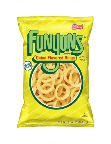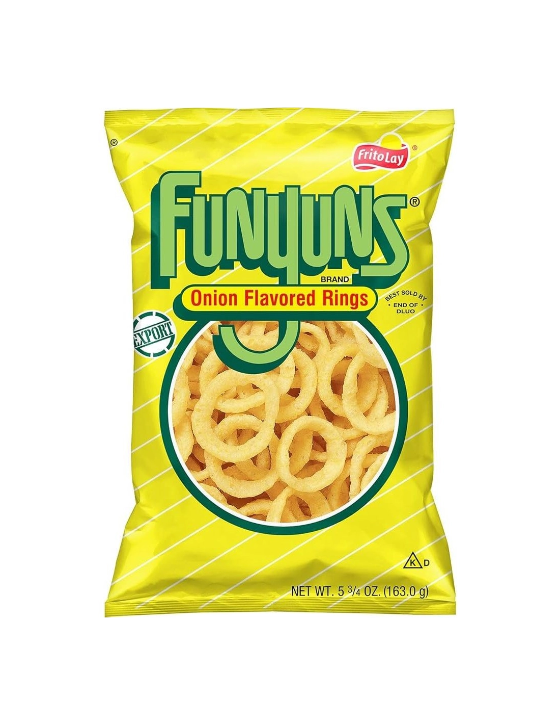 Découvrez les chips Funyuns Original de Frito Lay en forme de petits anneaux. Elles sont au bon goût de l'oignon, elles sont délicieuses. Grand format de 163g.