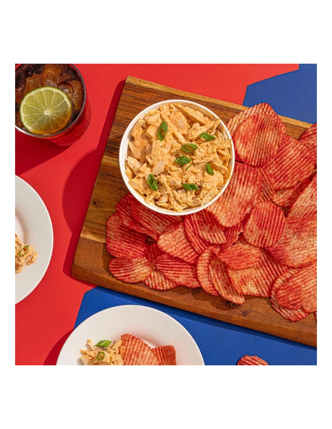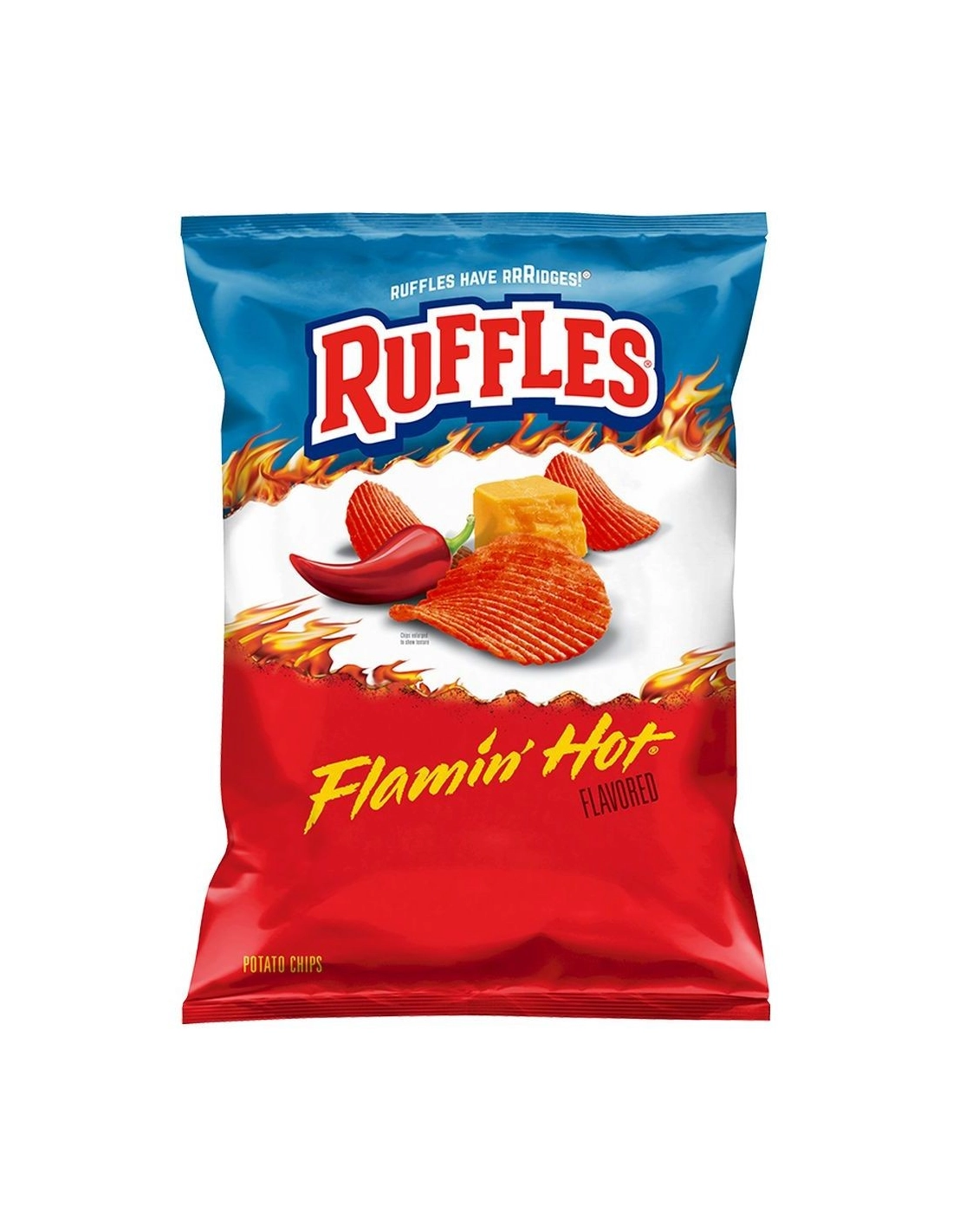 Faites monter la température de vos apéritifs avec les incontournables Chips Ruffles Flamin' Hot ! Aux États-Unis, Ruffles est la reine incontestée des chips grâce à ses fameuses ondulations profondes. Ces "crêtes" ne servent pas qu'à faire joli : elles garantissent un croustillant exceptionnel à chaque bouchée.