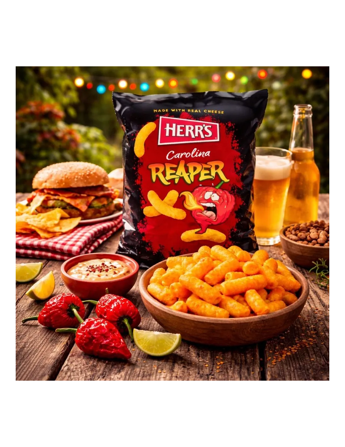 Piment le plus fort du monde, le Carolina Reaper va souffler un vent de chaleur dans votre bouche ! Alliés aux bon goût du fromage, les chips Herr's Carolina Reaper 70g vont mettre du piquant dans votre vie !