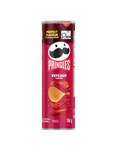 Les Pringles Ketchup capturent parfaitement la saveur du ketchup américain dans une chips croustillante. L'assaisonnement combine poudre de tomate, vinaigre acidulé, ail et paprika pour reproduire ce goût condimentaire tant apprécié. Une saveur culte particulièrement populaire au Canada, dans le format tube empilable iconique de Pringles.