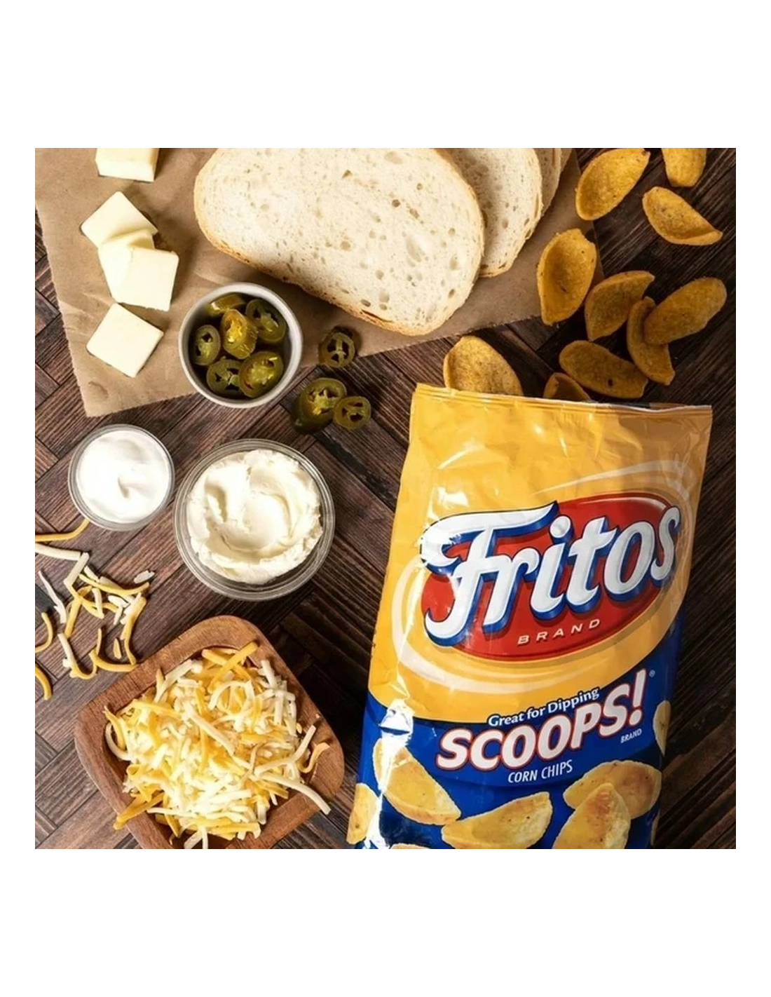Découvrez les Chips Fritos Scoops (311g) : les mythiques chips de maïs américaines ! Épaisses et moulées en forme de petites coupelles, elles sont l'arme absolue pour ramasser vos sauces les plus denses sans jamais se briser.