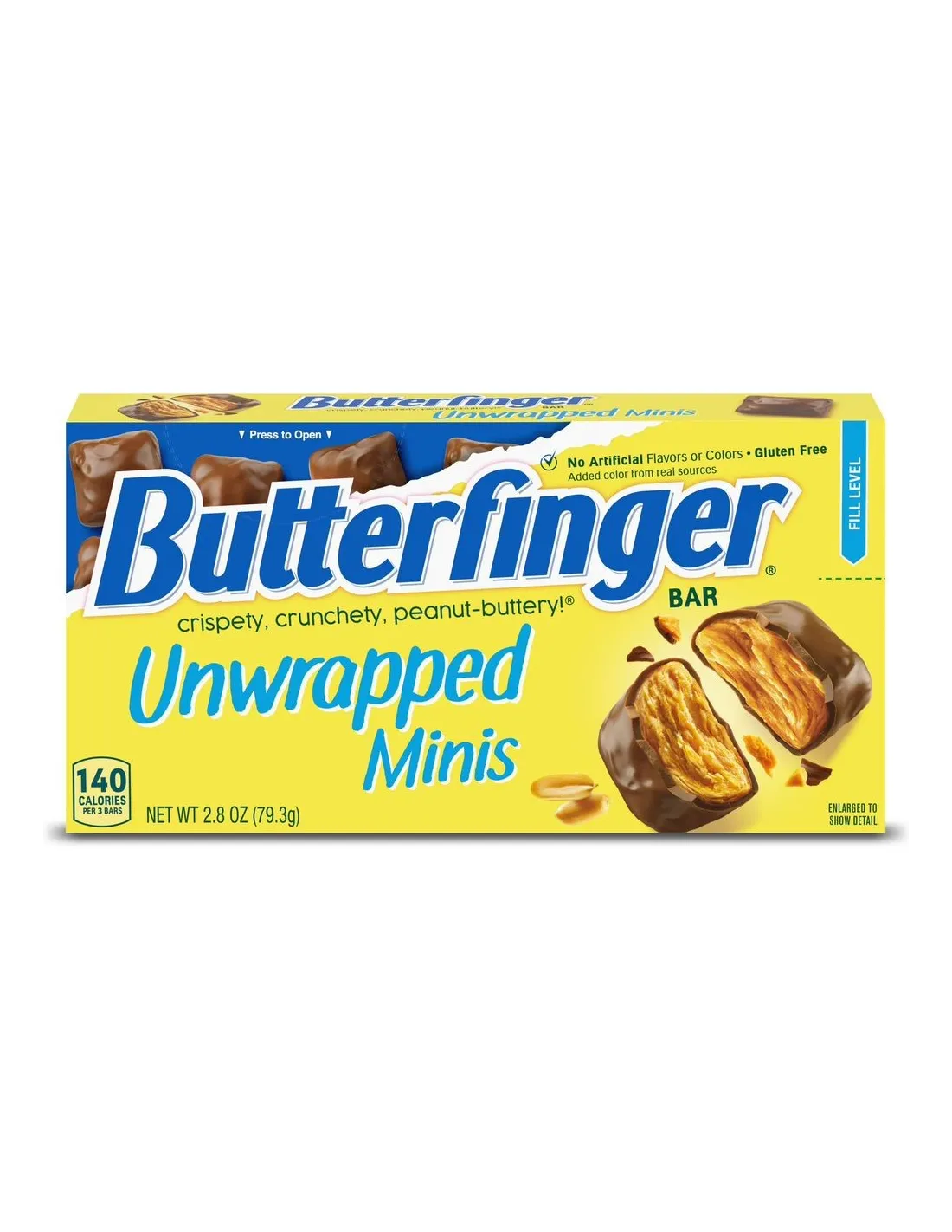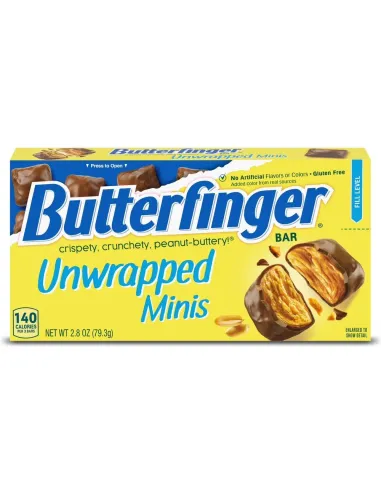 Te encantarán los Butterfinger Unwrapped Minis . Estos son pequeños bocados de chocolate con leche rellenos con un interior de caramelo crujiente mezclado con mantequilla de maní. Es bueno, se pega un poco a los dientes, nos encanta.