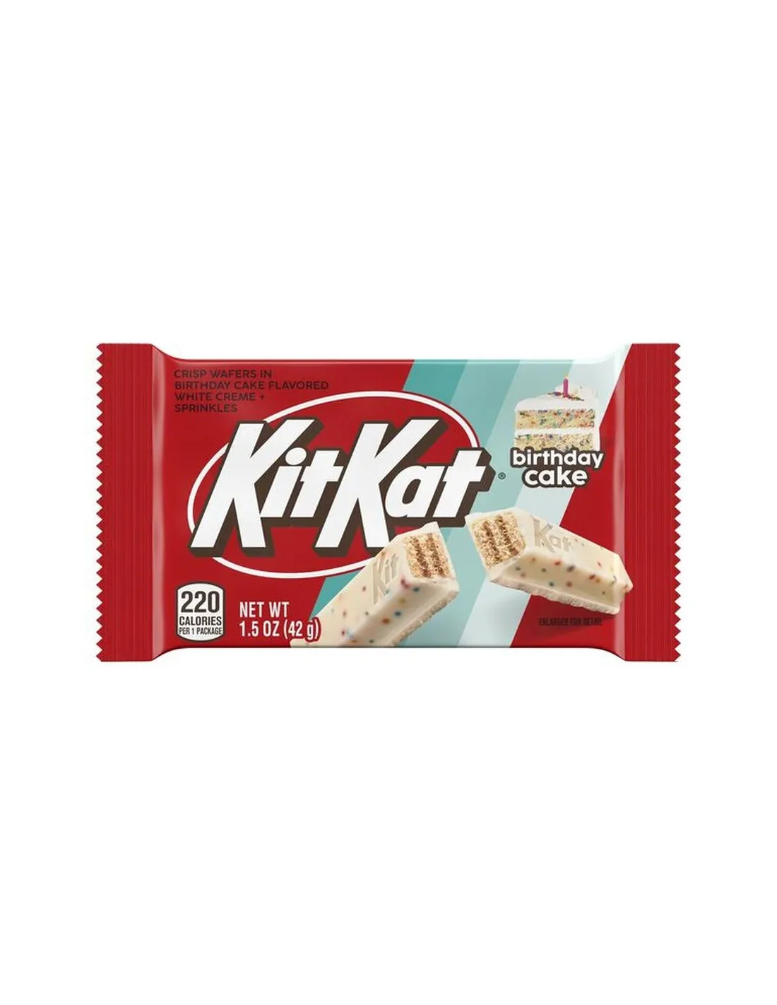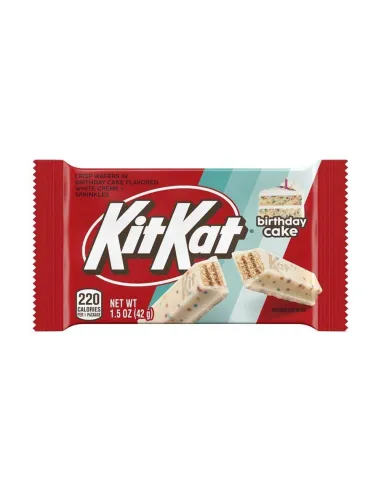 ¡La barra KitKat Birthday Cake hará las delicias de tu paladar con esta serie de edición limitada! ¡Déjate seducir por un delicioso barquillo con sabor a Birthday Cake (pastel de cumpleaños americano) ! Cuatro barras para el máximo placer. Deliciosamente fundente, ¡es la galleta ideal para tomar un descanso!