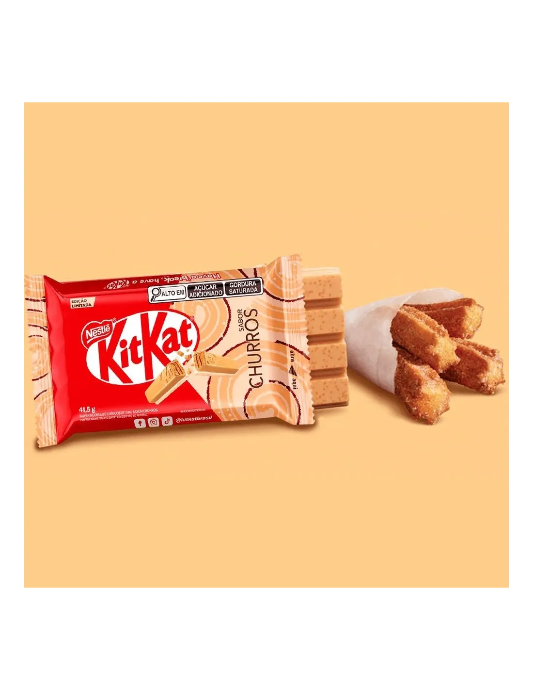 ¡La barra KitKat Churro Edición Limitada deleitará tu paladar con esta edición limitada! ¡Disfruta de una deliciosa oblea con sabor a churro (el auténtico sabor de los churros con azúcar) ! Cuatro barras para disfrutar al máximo. Se derrite en la boca, ¡la galleta perfecta para un descanso!