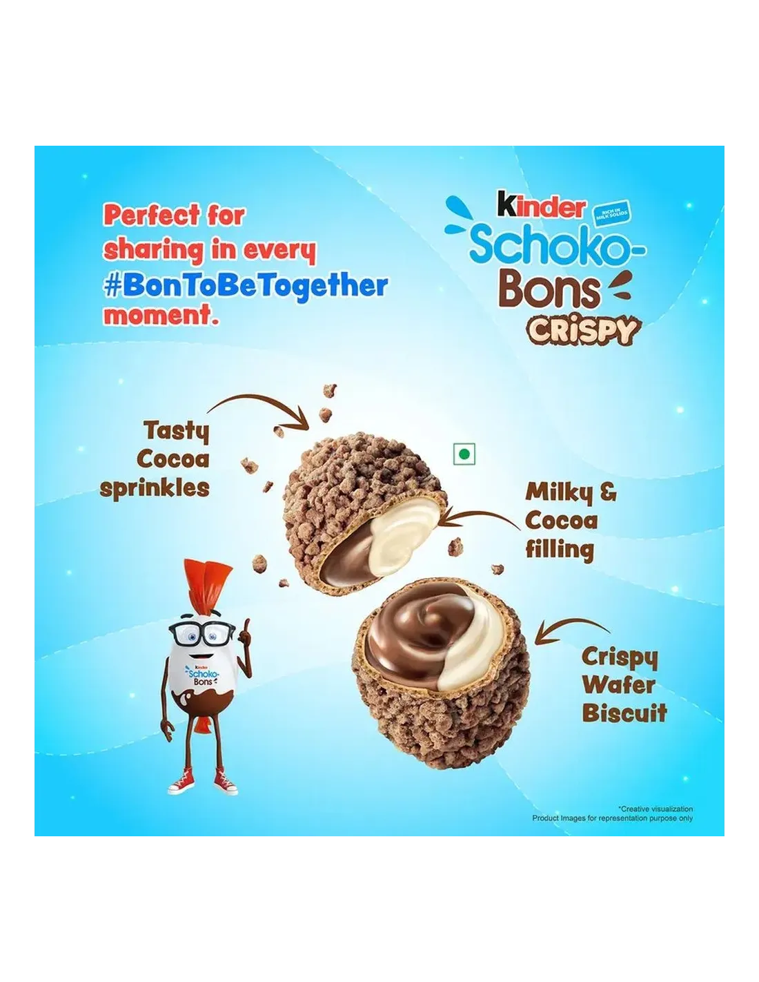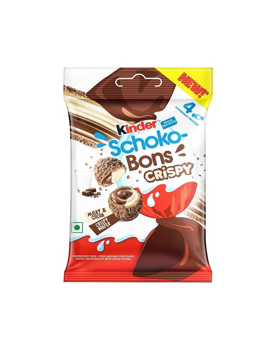 Una versión de Schoko-Bons Crispy de la India en formato de bolsillo. Cada paquete contiene 4 Crispy Schoko-Bons.