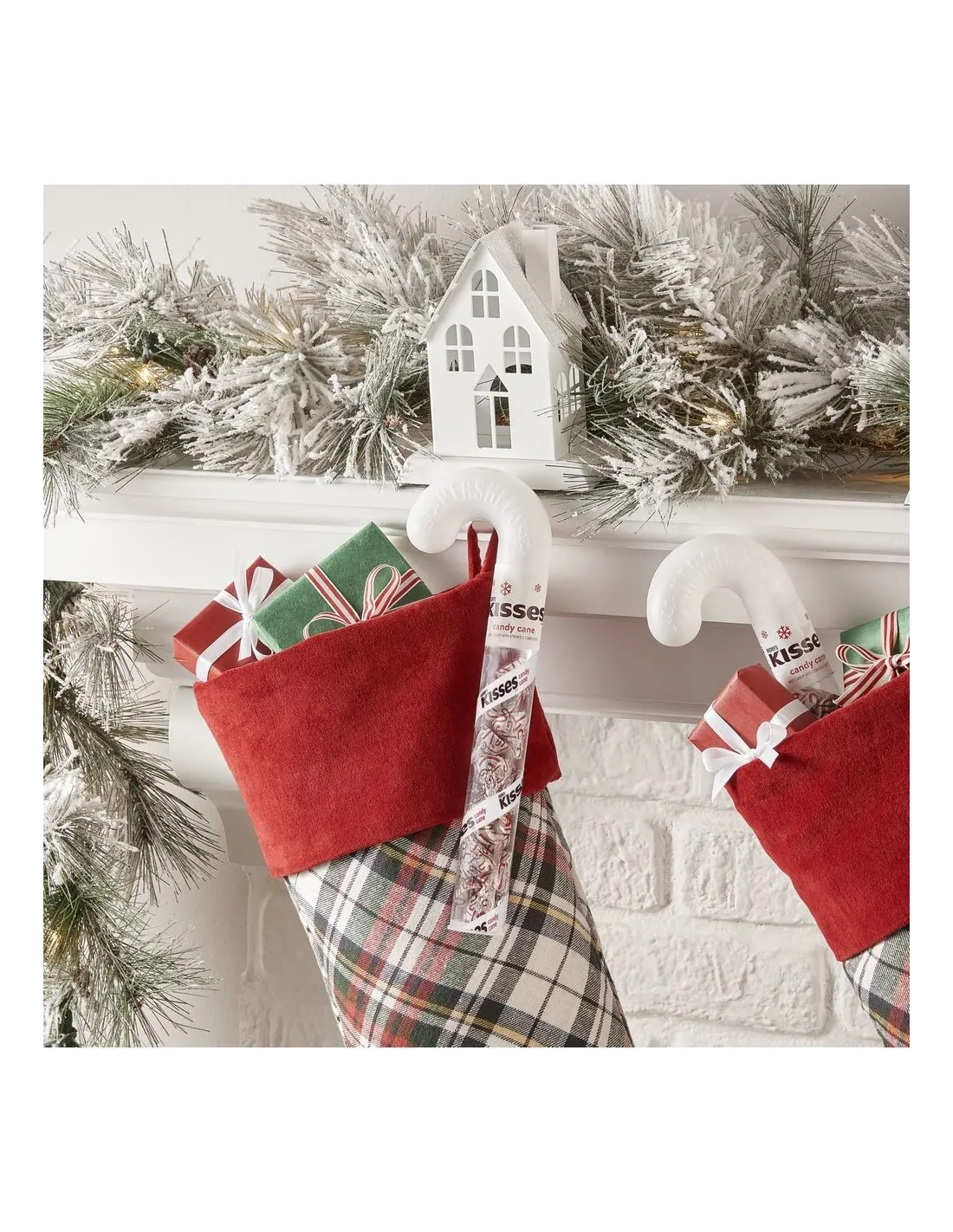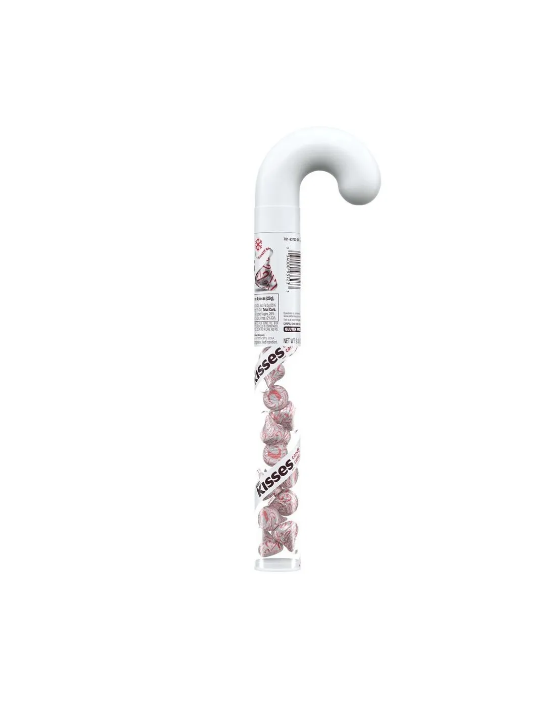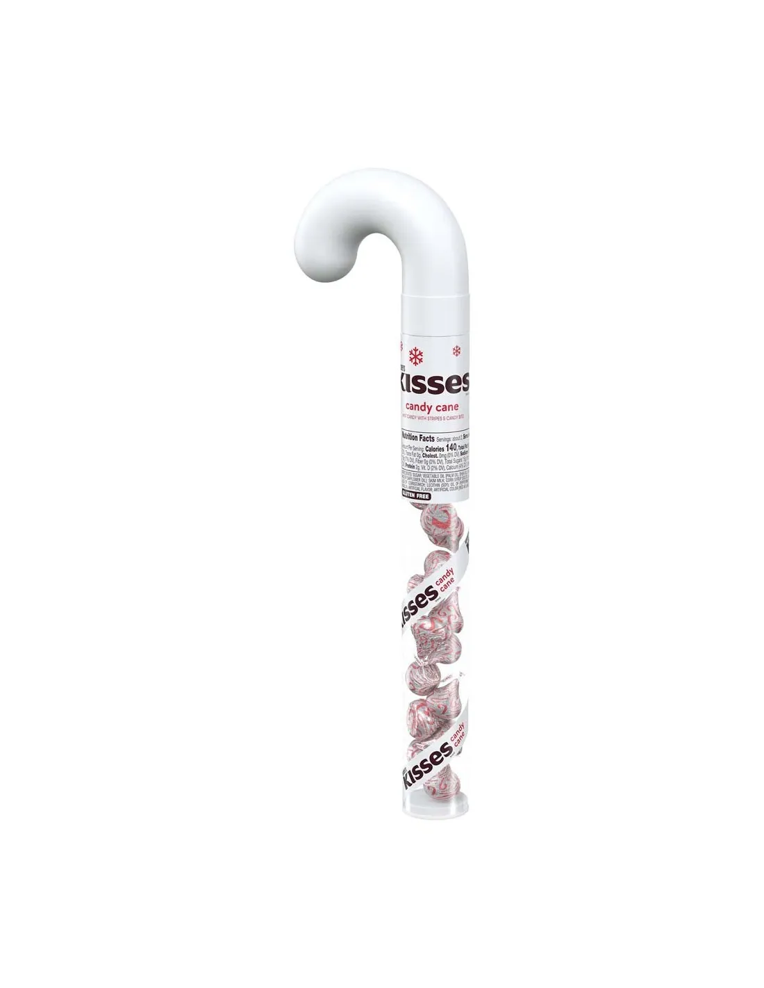 Los Kisses Candy Cane de Hershey's son pequeños bombones con forma de gotas de agua. Cada Beso está envuelto individualmente, tienen el buen sabor del chocolate blanco con menta. En esta ocasión los encontrarás en un tubo para ofrecer. ¡Es el tubo perfecto para colocar en tu árbol!