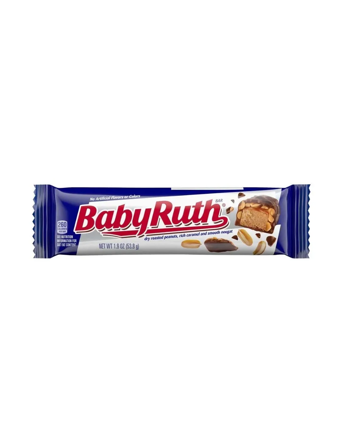 Disponible en tamaño estándar (aproximadamente 53,8 g) , así como en King Size, Fun Size o mini , Baby Ruth es adecuado tanto para el consumo individual como para la distribución , una caja de regalo gourmet o una selección de snacks americanos .