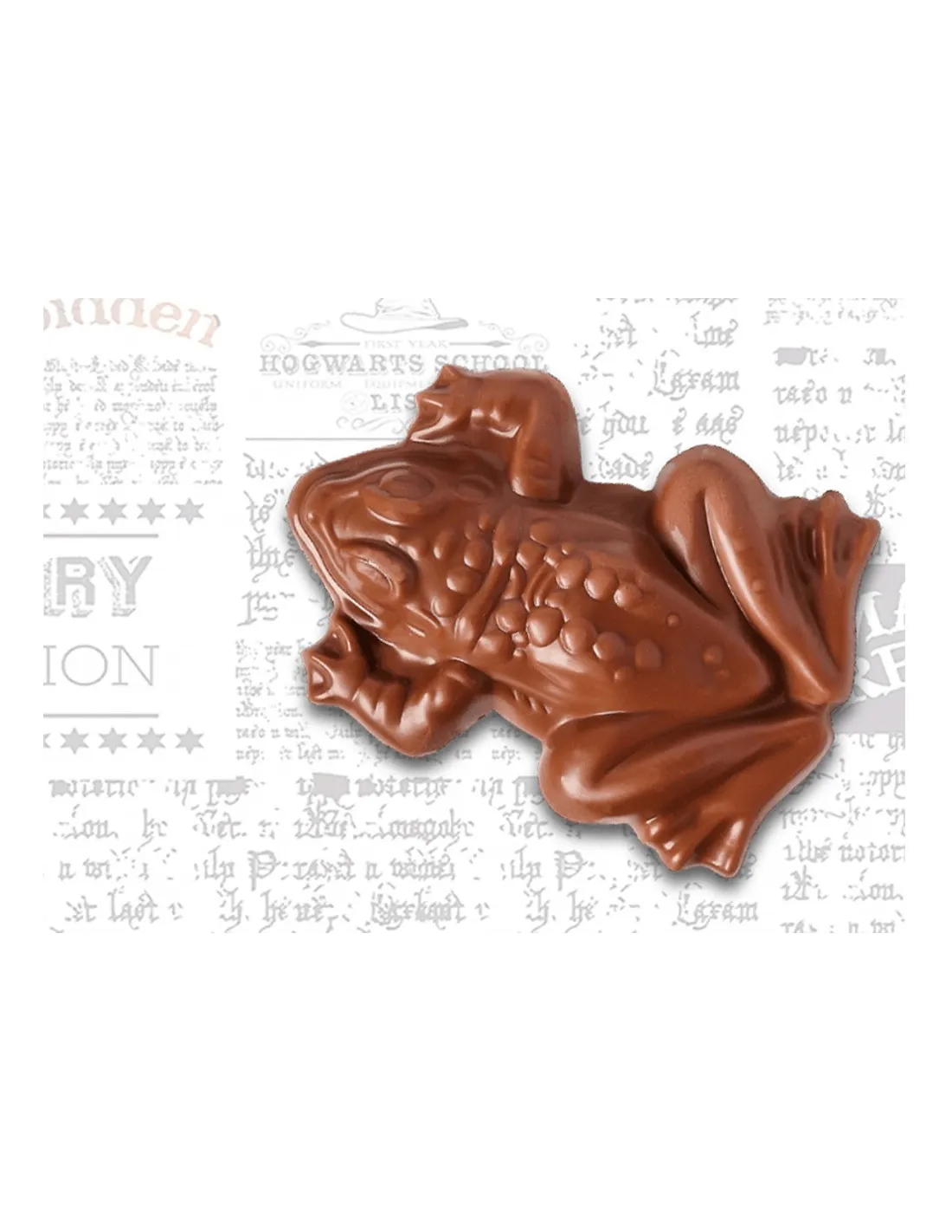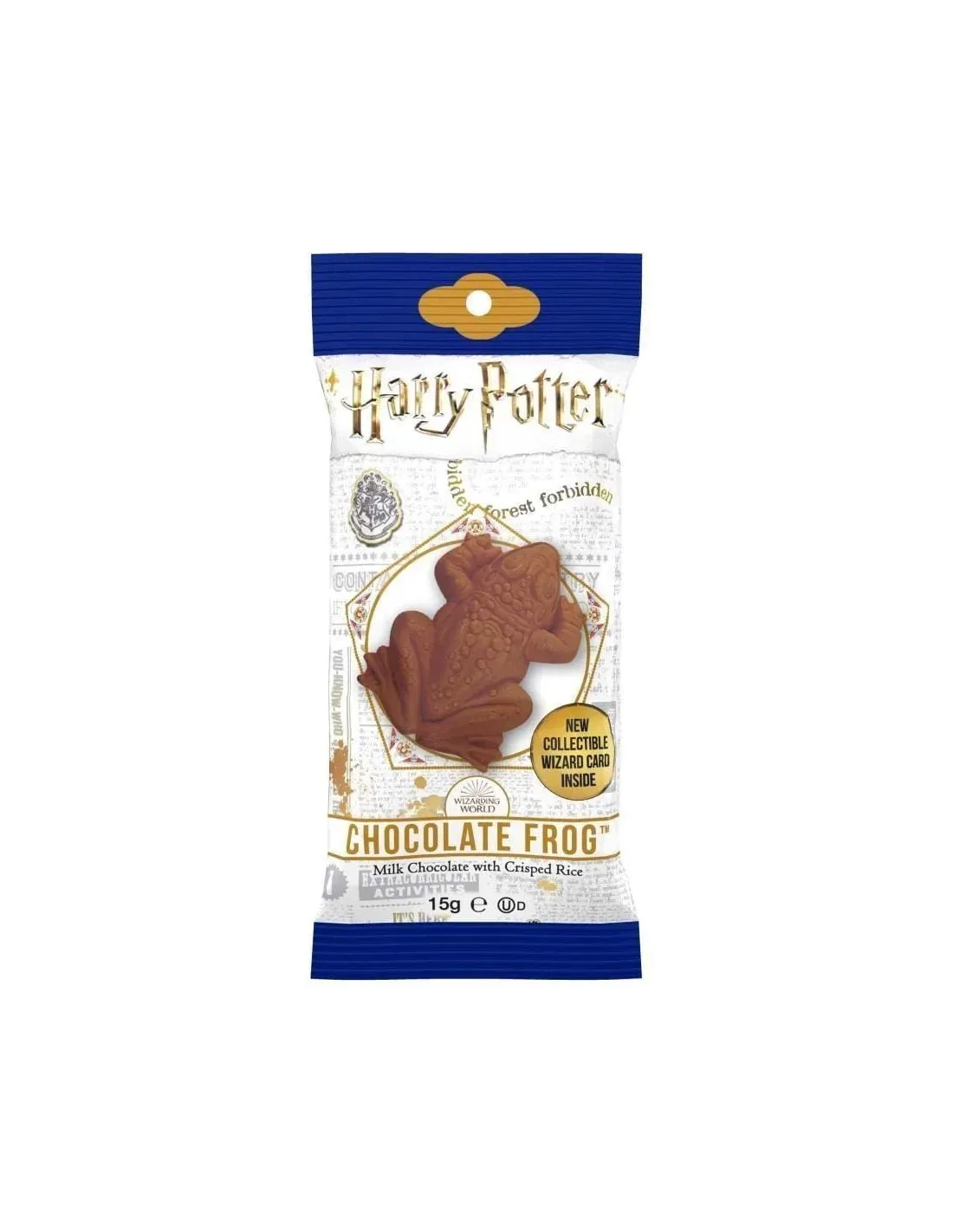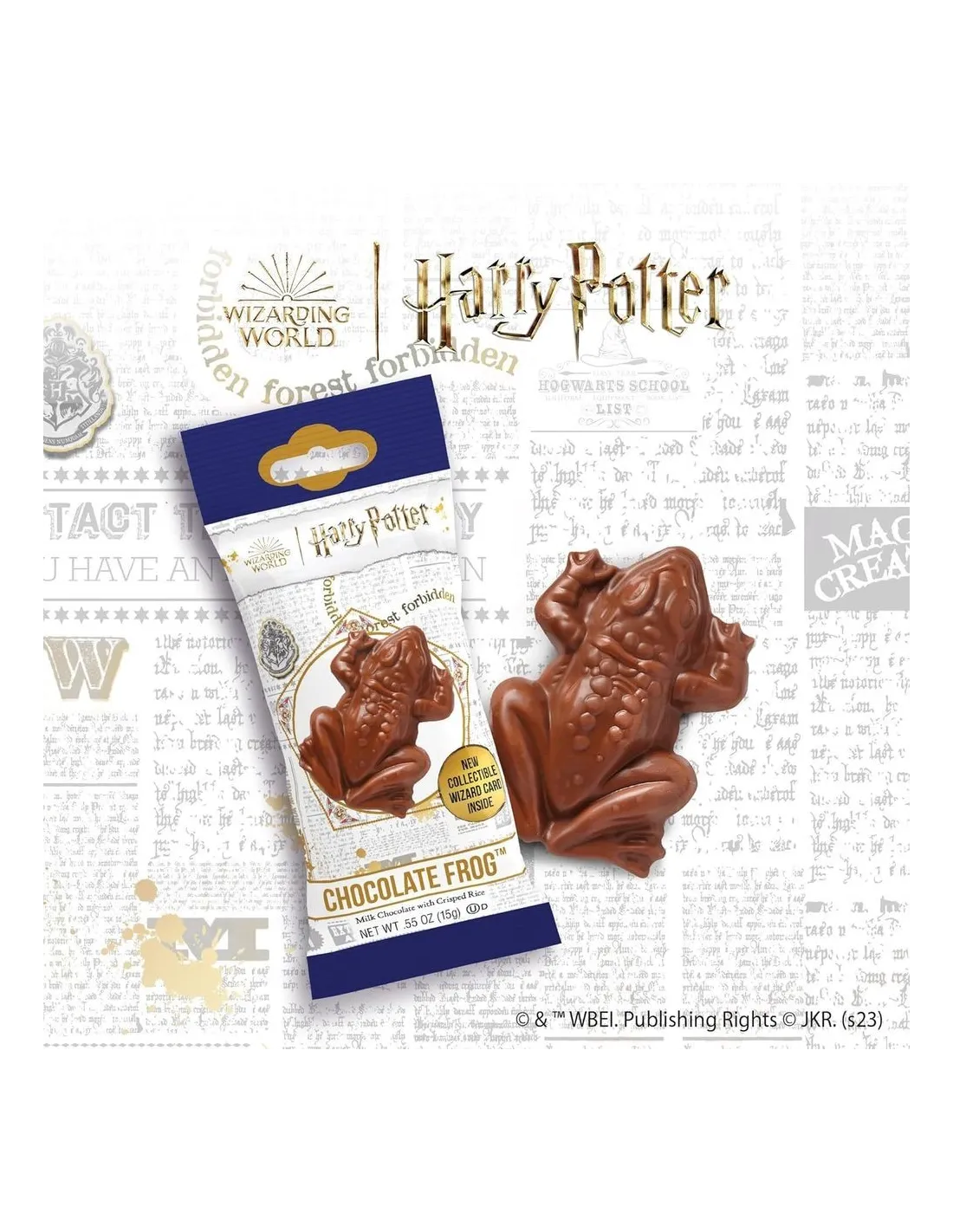 Directamente inspirado en la película y los libros de culto, este dulce es una rana de chocolate con leche crujiente, que contiene una tarjeta coleccionable de mago o bruja al azar de una gran colección (Dumbledore, McGonagall y muchos otros).