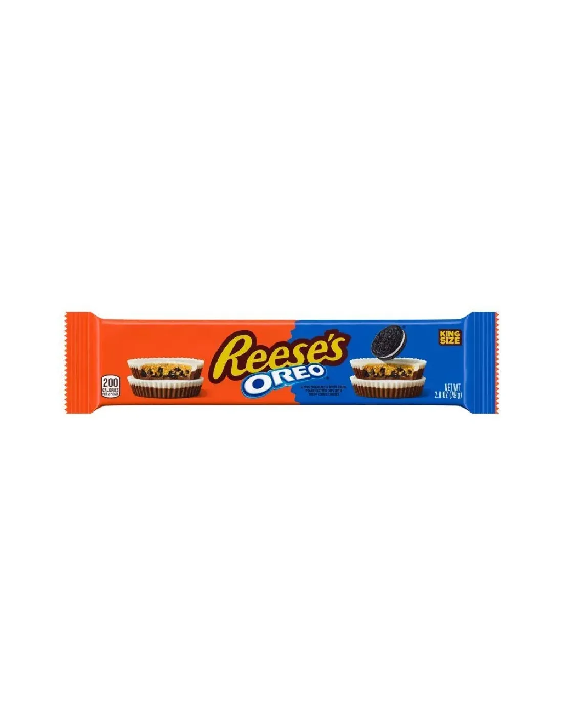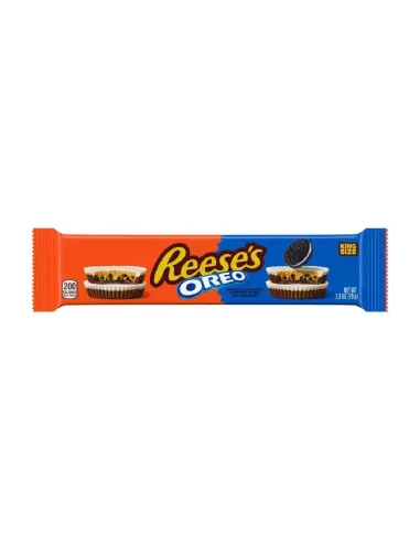 Las Oreo Cups King Size de Reese's combinan dos leyendas de la repostería estadounidense: la suave mantequilla de cacahuete de Reese's y las crujientes galletas Oreo, para un capricho absolutamente irresistible. En la versión King Size , cada cup es aún más generoso, más grueso y está más relleno de esta icónica mezcla.