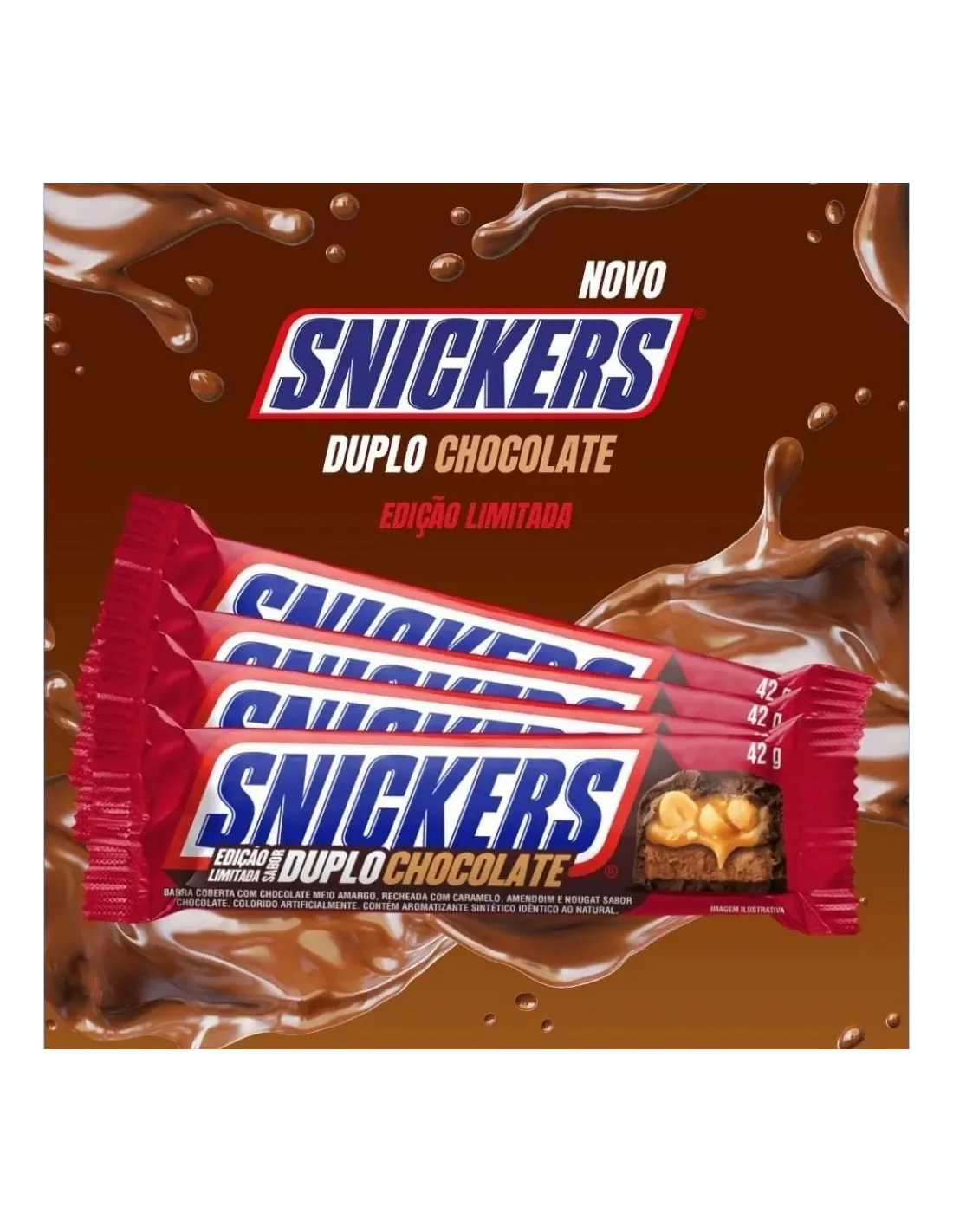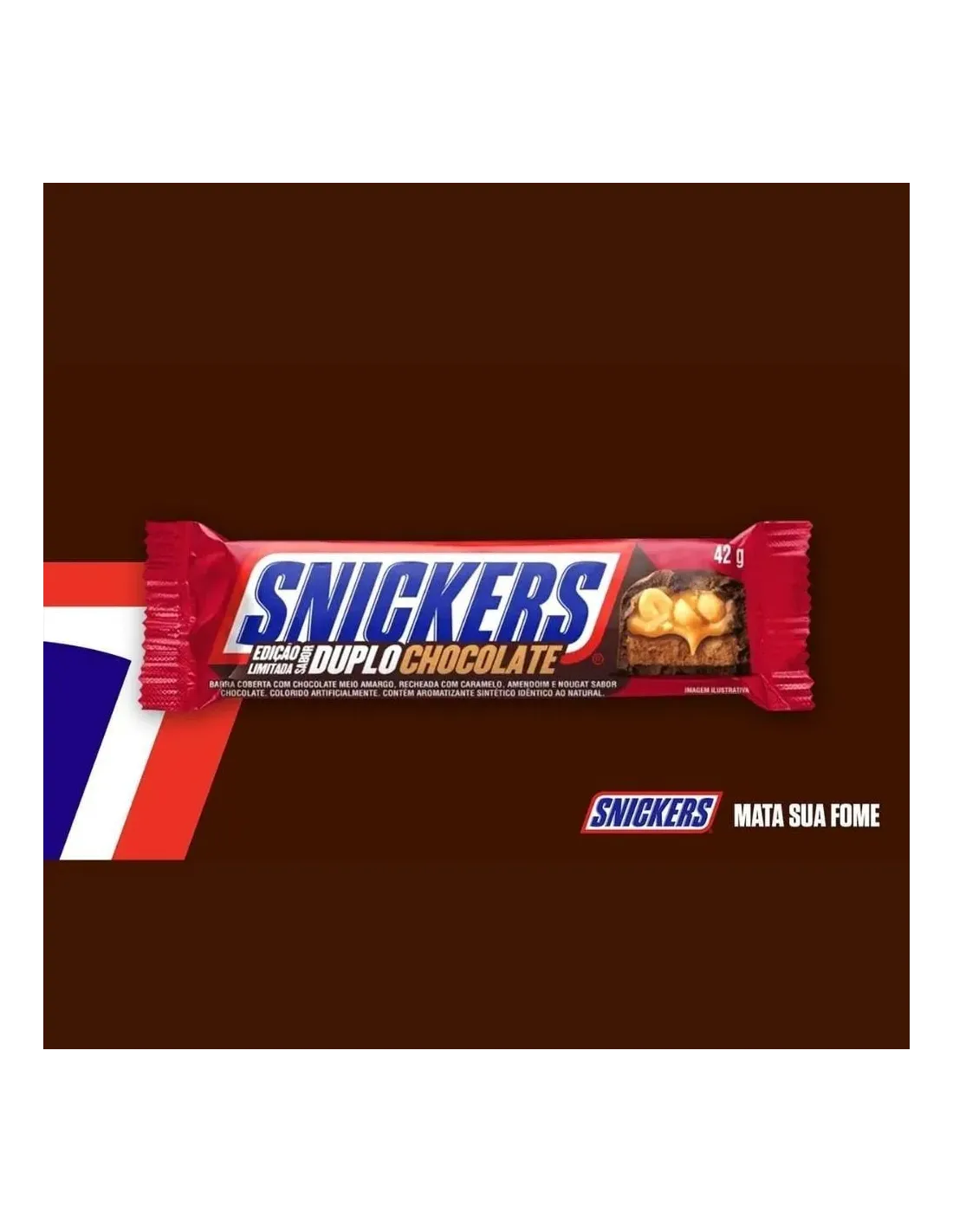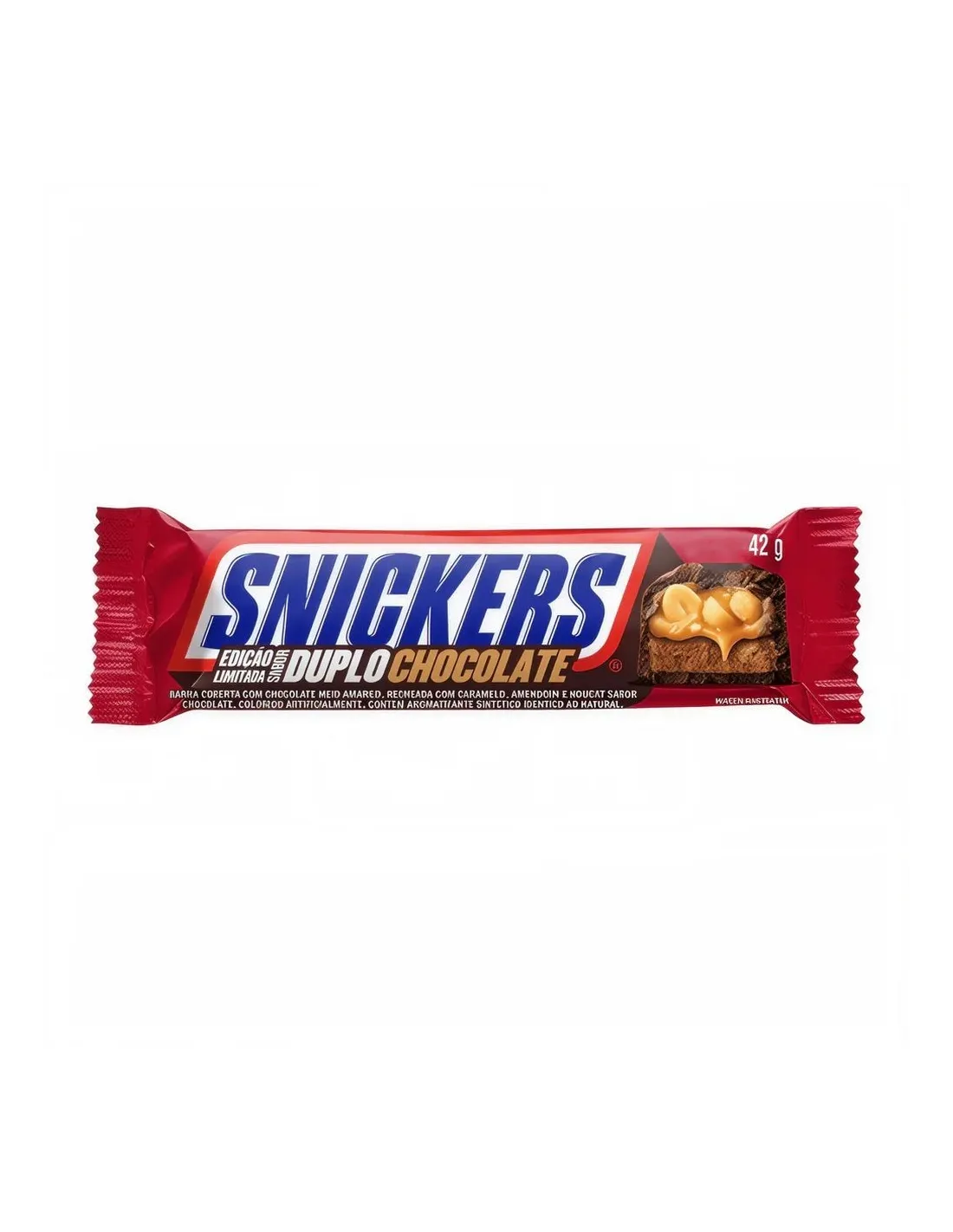 Snickers Doble Chocolate lleva la experiencia del chocolate a otro nivel. Esta versión especial reinventa la receta clásica incorporando cacao en cada capa: turrón con infusión de chocolate , una generosa capa de suave caramelo , crujientes cacahuetes tostados y una rica e intensa cobertura de chocolate con leche . El resultado es una barra doblemente chocolatosa e irresistible.