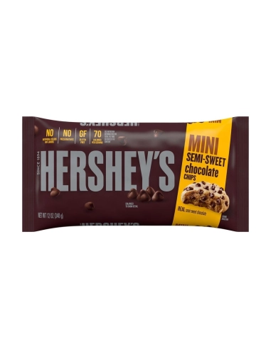 Eleve sus creaciones culinarias al nivel de los verdaderos postres estadounidenses con los Mini Semi-Sweet Chocolate Chips de Hershey's : los chips de chocolate más famosos de Estados Unidos, utilizados por familias estadounidenses durante generaciones.